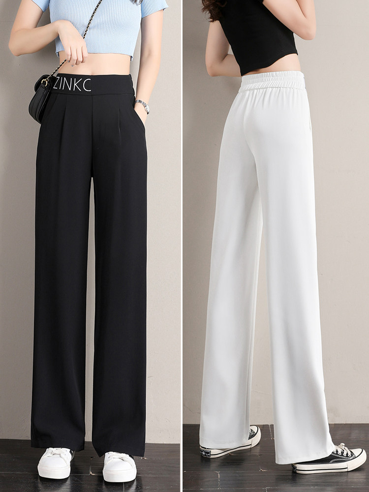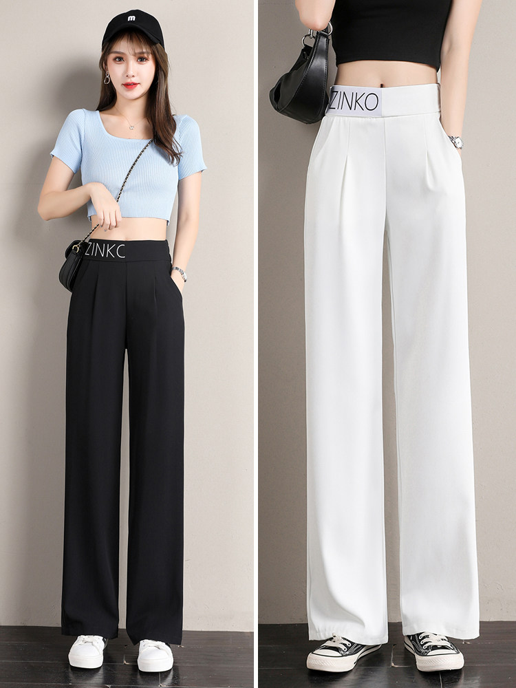 Штаны, летний белый шифоновый костюм, высокая талия, свободный прямой крой