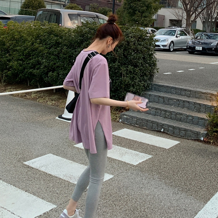 Tide, сексуальная длинная футболка с коротким рукавом, простой крой, большой размер, свободный крой, средней длины