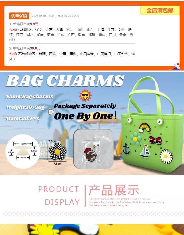 Пляжный аксессуар для сумки ручной работы, мультяшная милая многоцветная ручка, съемные аксессуары, DIY