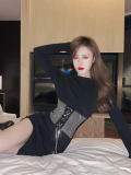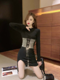 Модная цепь, сексуальный короткий корсет, платье, в корейском стиле, городской стиль, в обтяжку