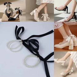 Туфли на высоком каблуке из жемчуга, цепь, шнурок-держатель, ремешок для ног