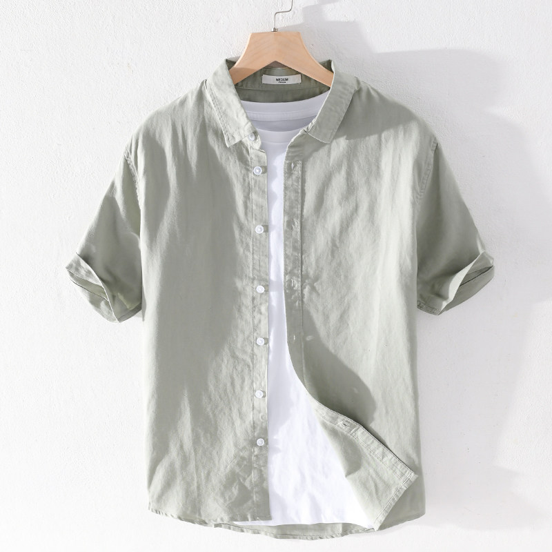 Японская трендовая рубашка для отдыха, оверсайз, размер, из хлопка и льна