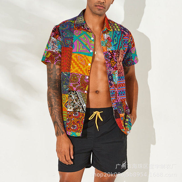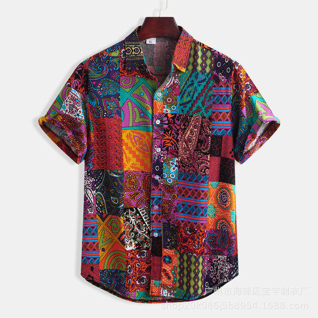 Хлопковая льняная печать гавайская пуговица рубашки плюс размер