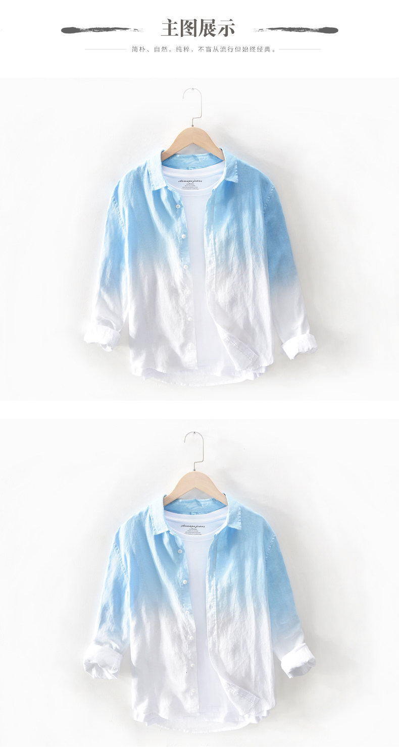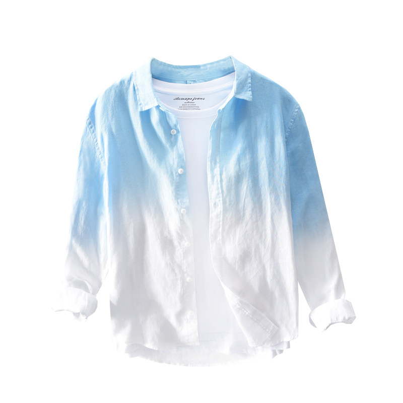 Мужская летняя синяя антибактериальная рубашка, градиент