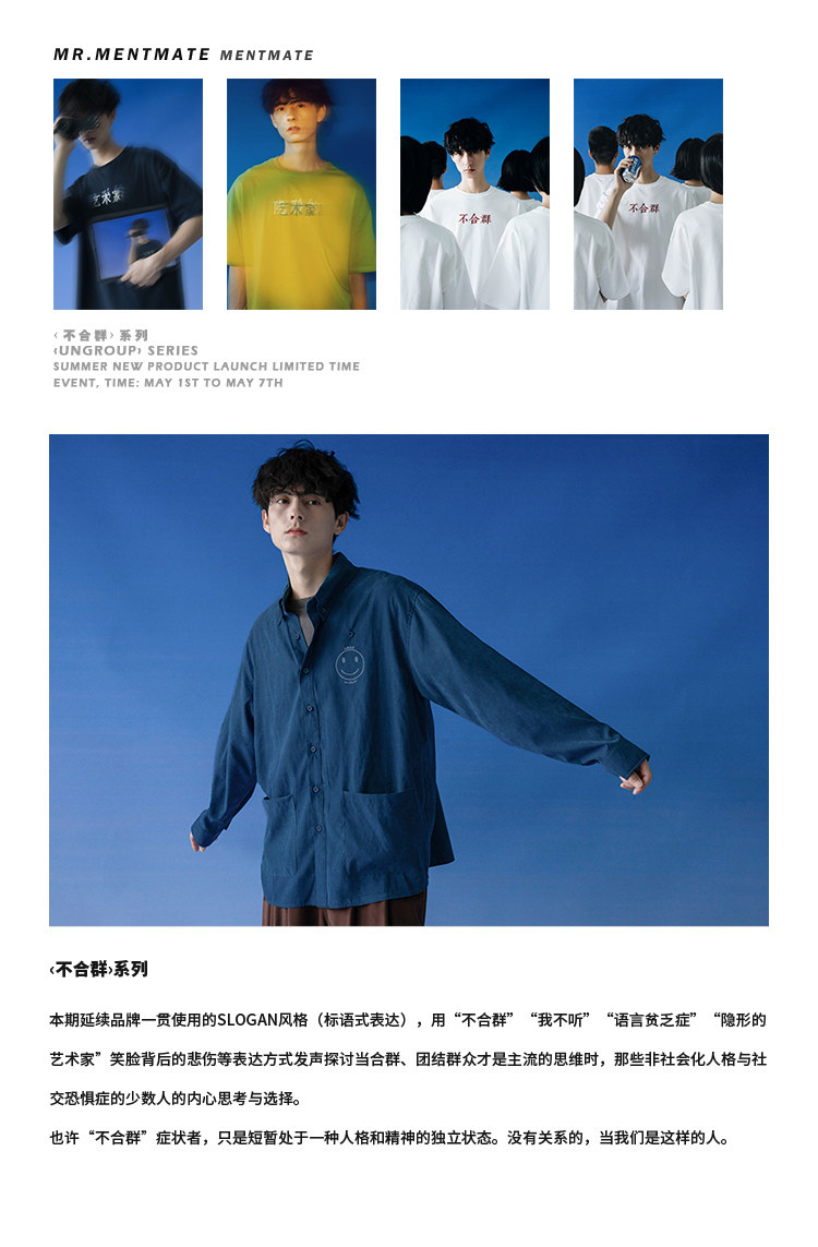 Misfit Series/Laughter is Just a Expression мужская нишевая рубашка с длинными рукавами в японском стиле ретро Mr. Montmartre