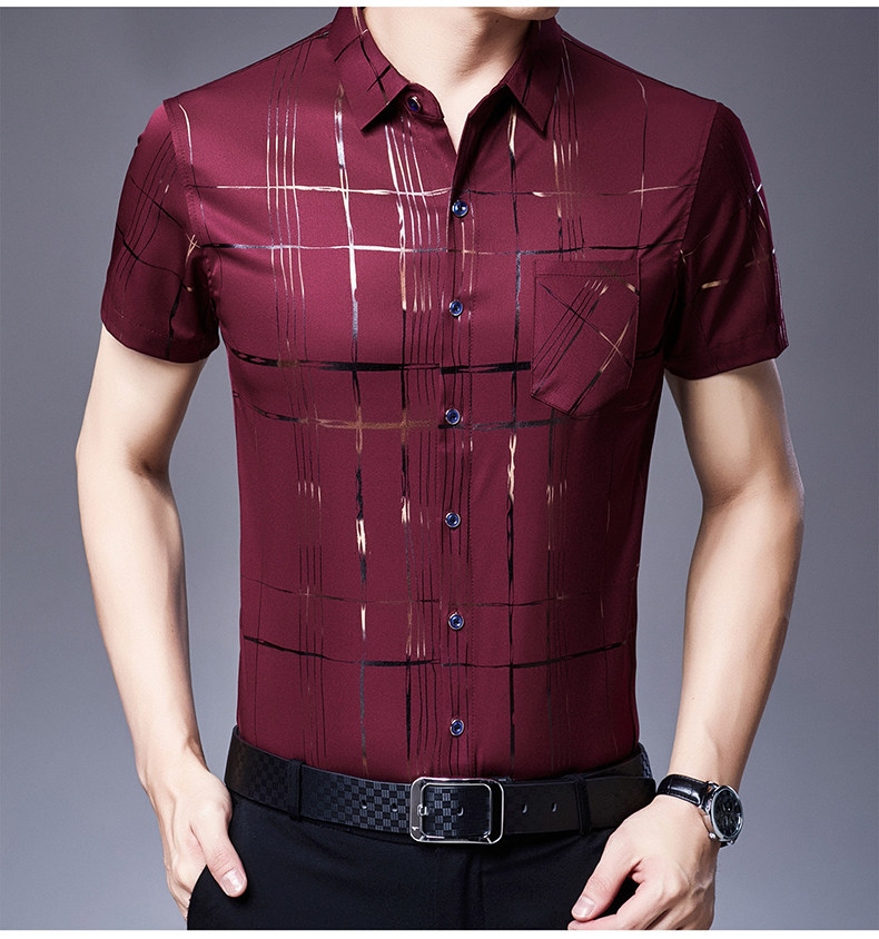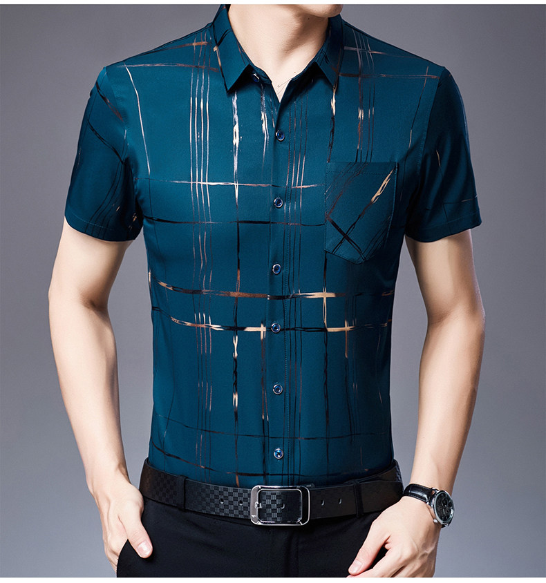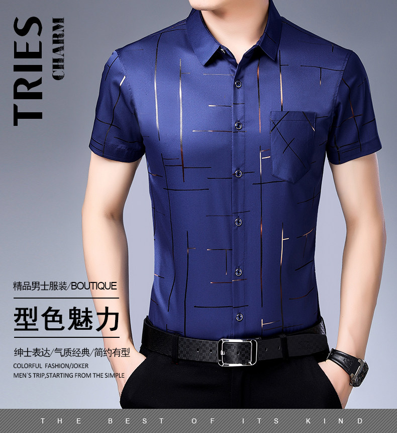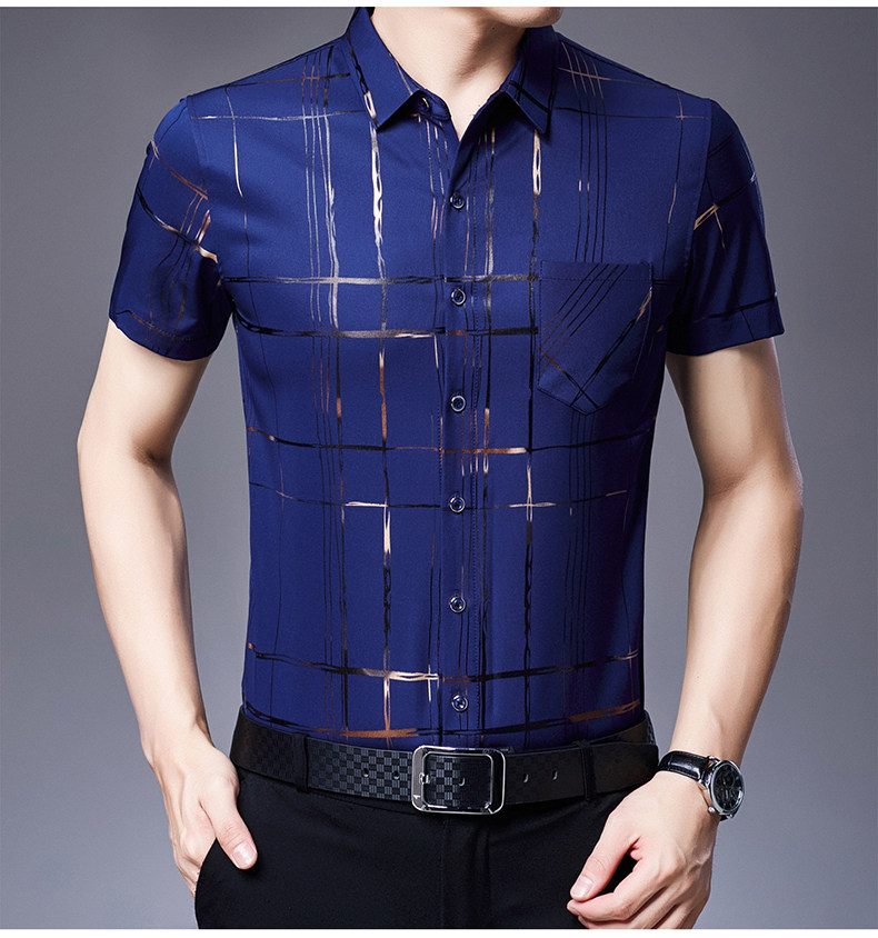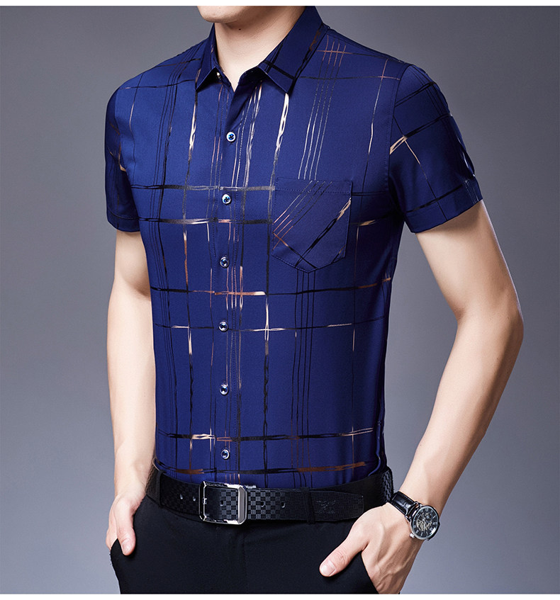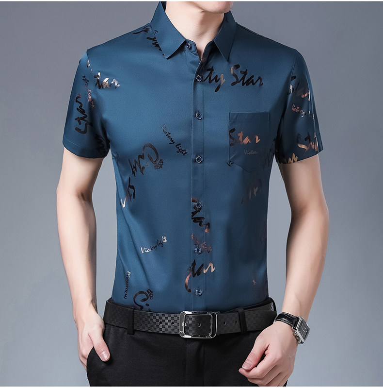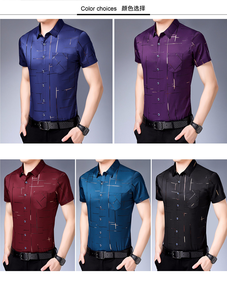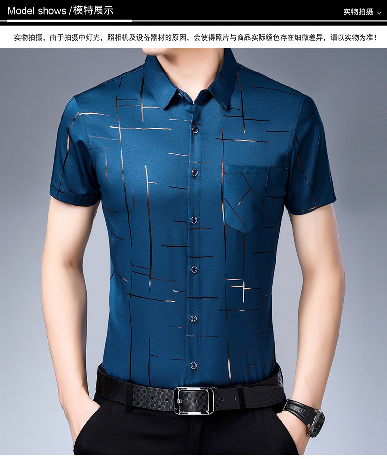 Летняя мужская ледяная шелковая рубашка с шерстью в среднем папе в среднем папе с карманной одеждой