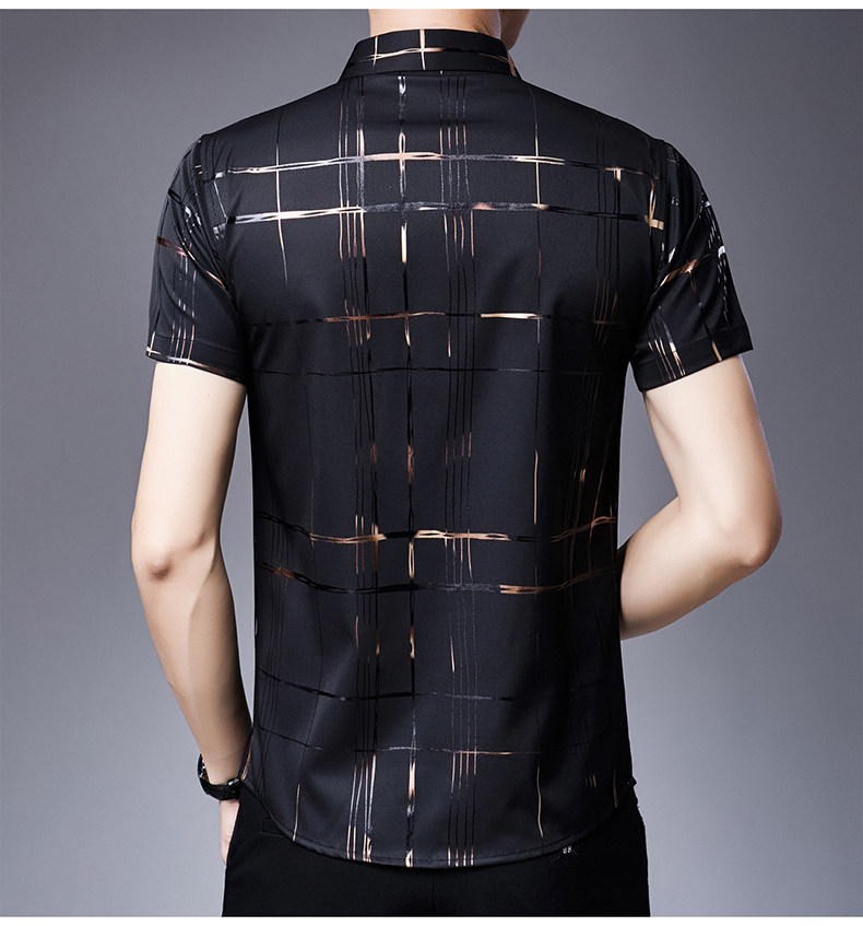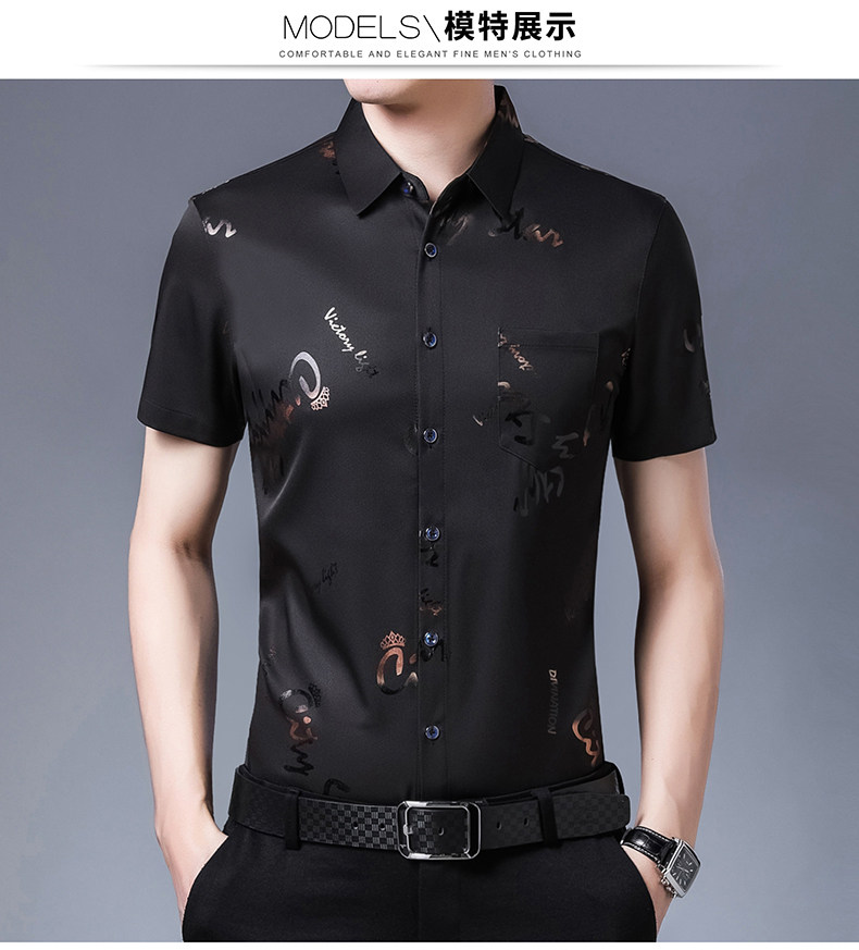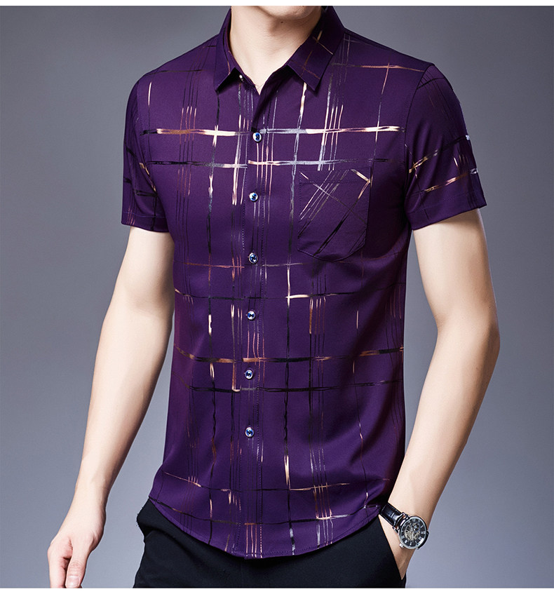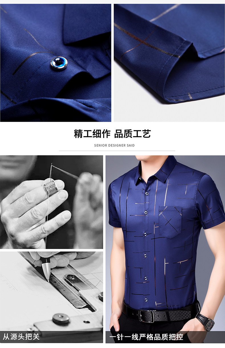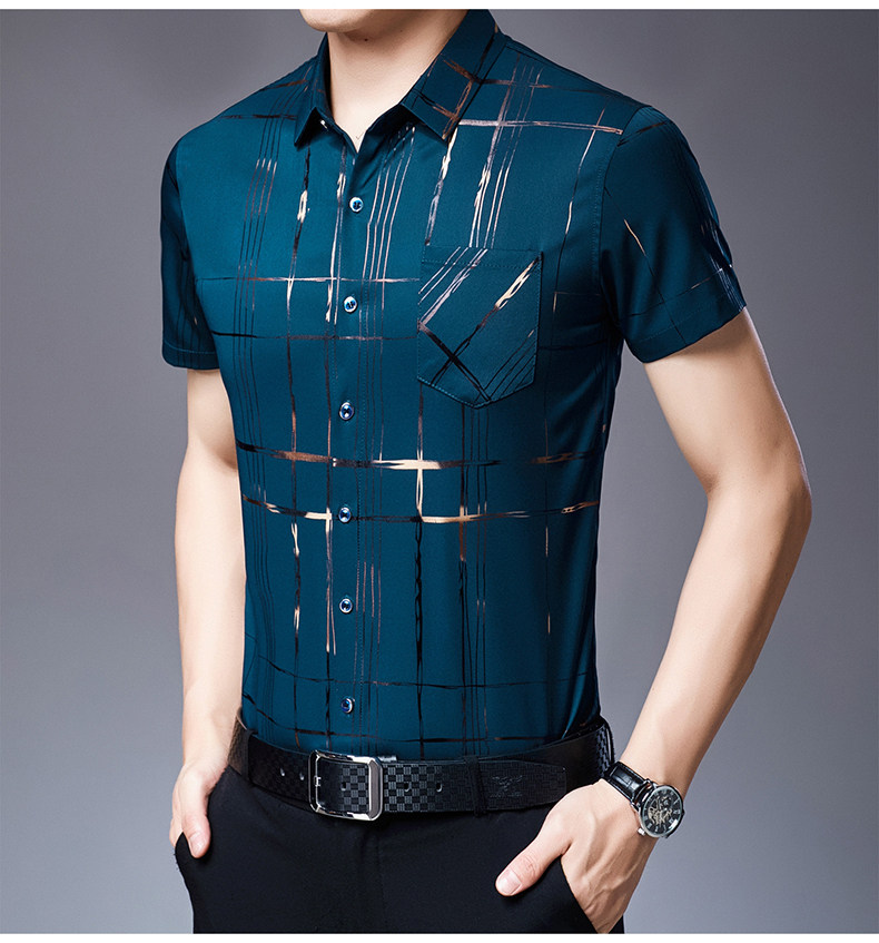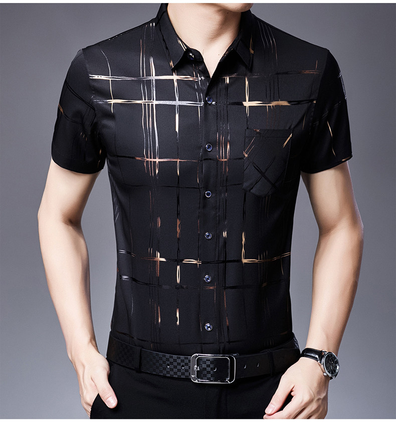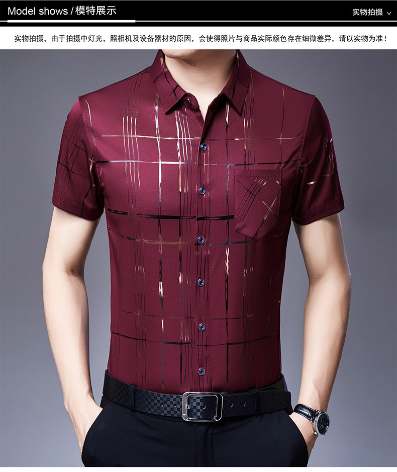 Летняя мужская ледяная шелковая рубашка с шерстью в среднем папе в среднем папе с карманной одеждой