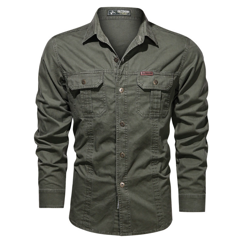 Камуфляжный лонгслив, мужская осенняя хлопковая универсальная рубашка для отдыха, оверсайз