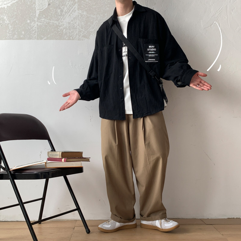Демисезонная осенняя рубашка, модная универсальная куртка для школьников, свободный крой, квадратный вырез, в корейском стиле