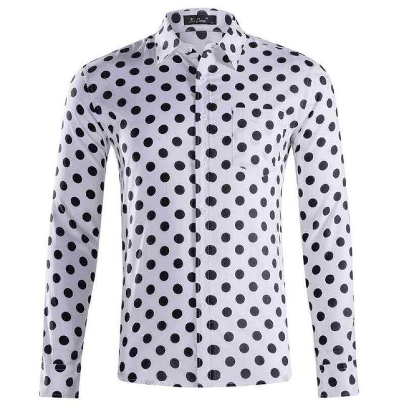 Новая мужская рубашка в горошек с длинными рукавами Plus-Size