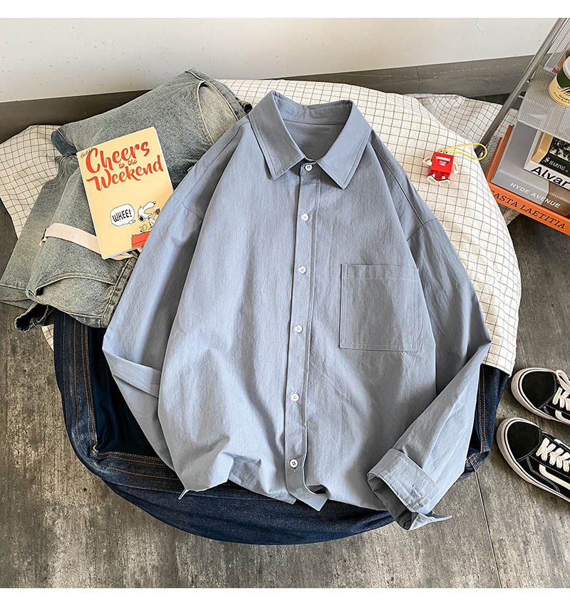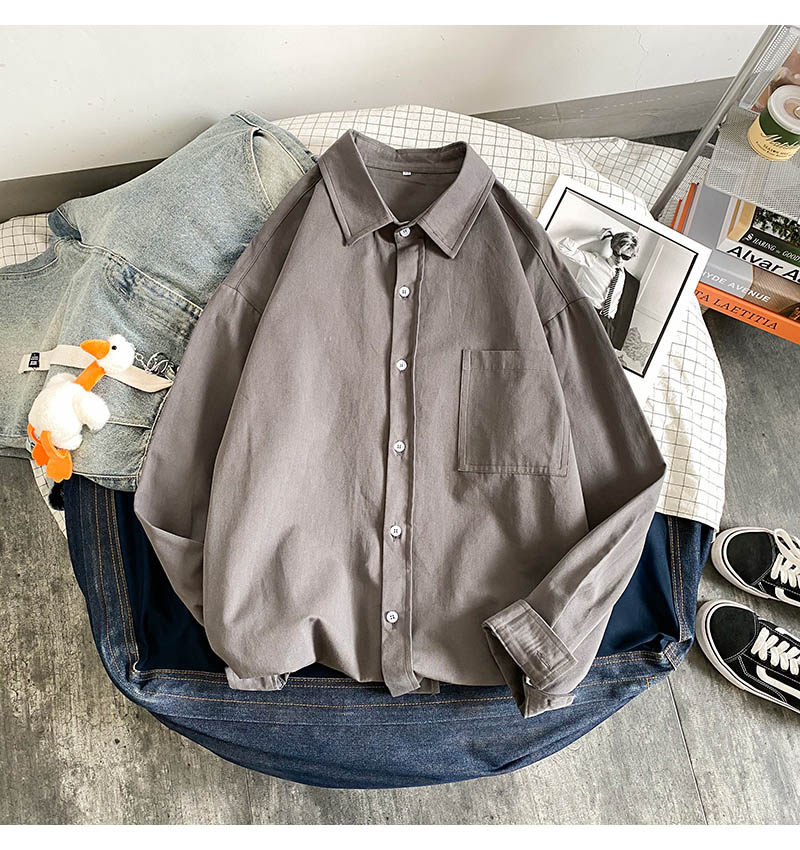 Демисезонная однотонная удерживающая тепло трендовая базовая рубашка для школьников, в корейском стиле, увеличенная толщина