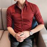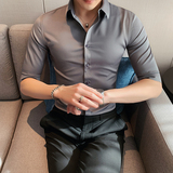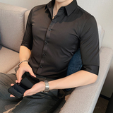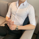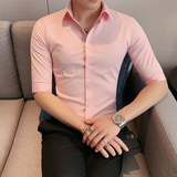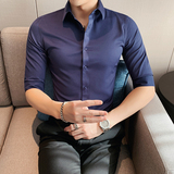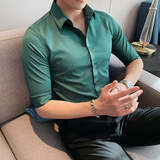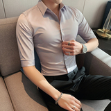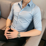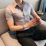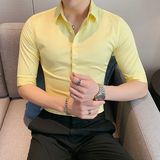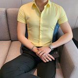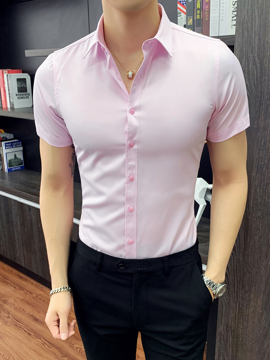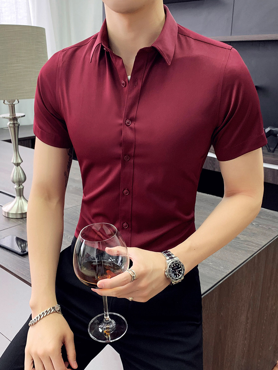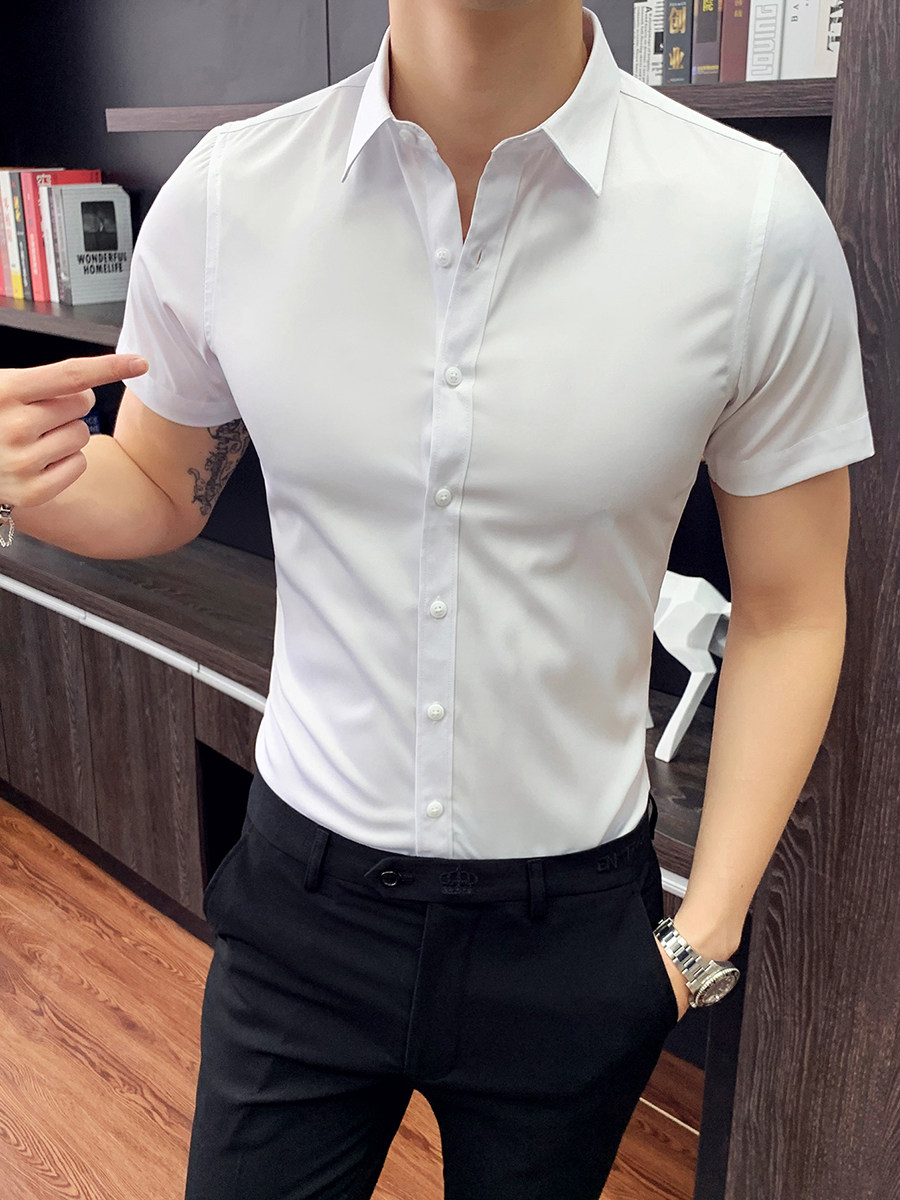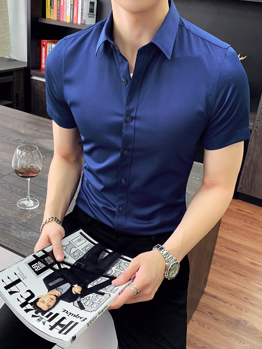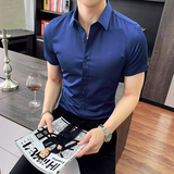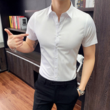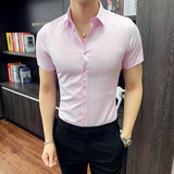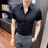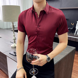 Тонкая трендовая рубашка для отдыха, короткий рукав, в корейском стиле, облегающий крой
