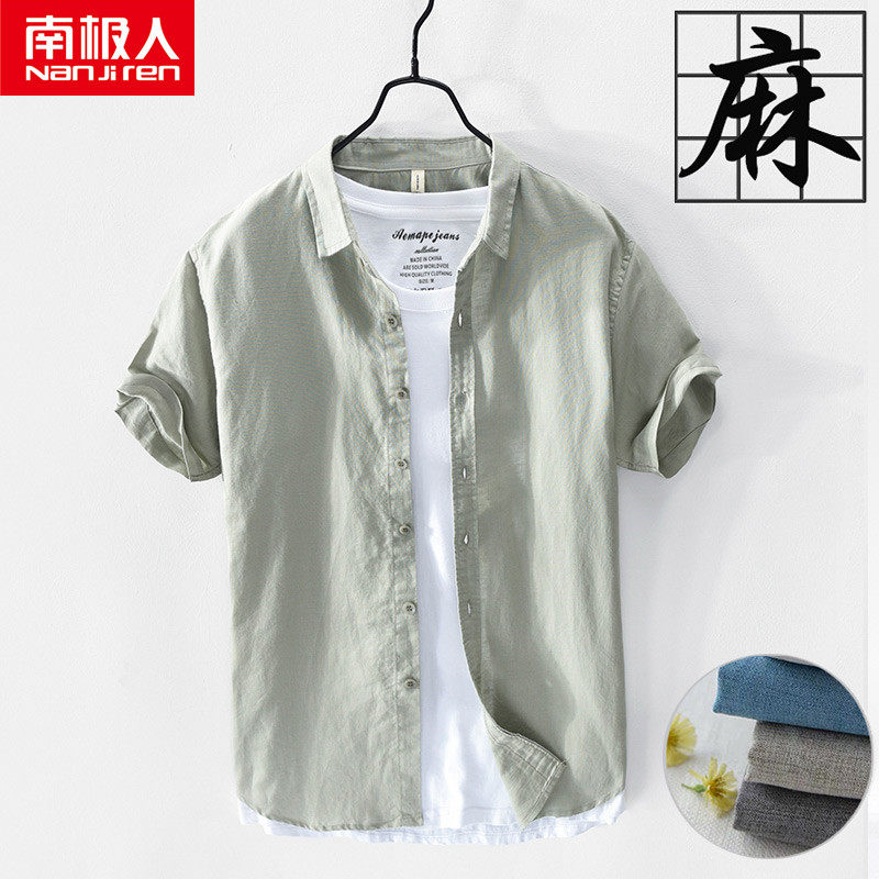 南极人 Мужская летняя рубашка, однотонная тонкая футболка для отдыха, из хлопка и льна
