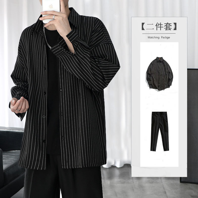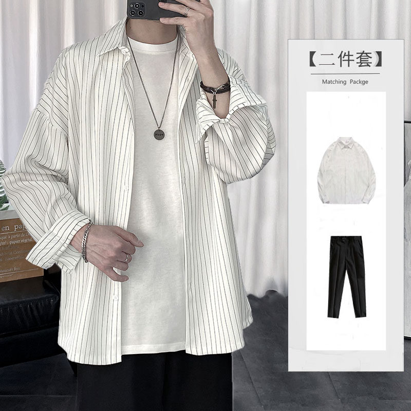 Мужская японская рубашка для отдыха, осенний трендовый комплект, оверсайз