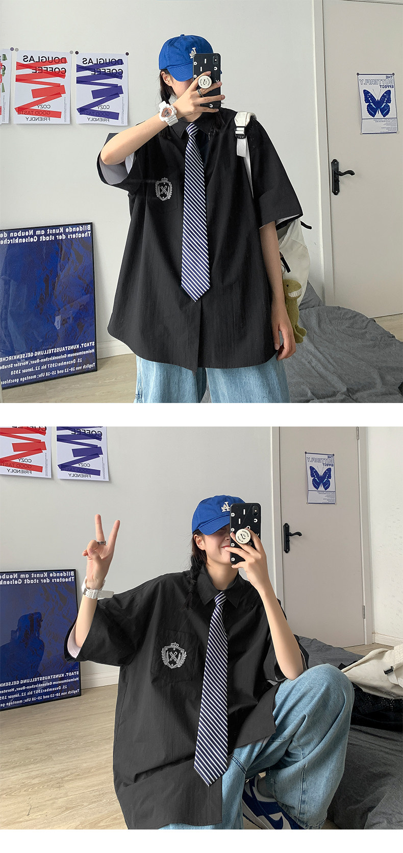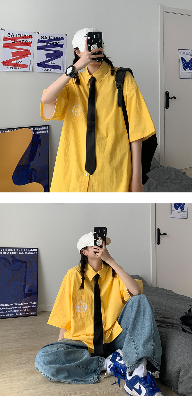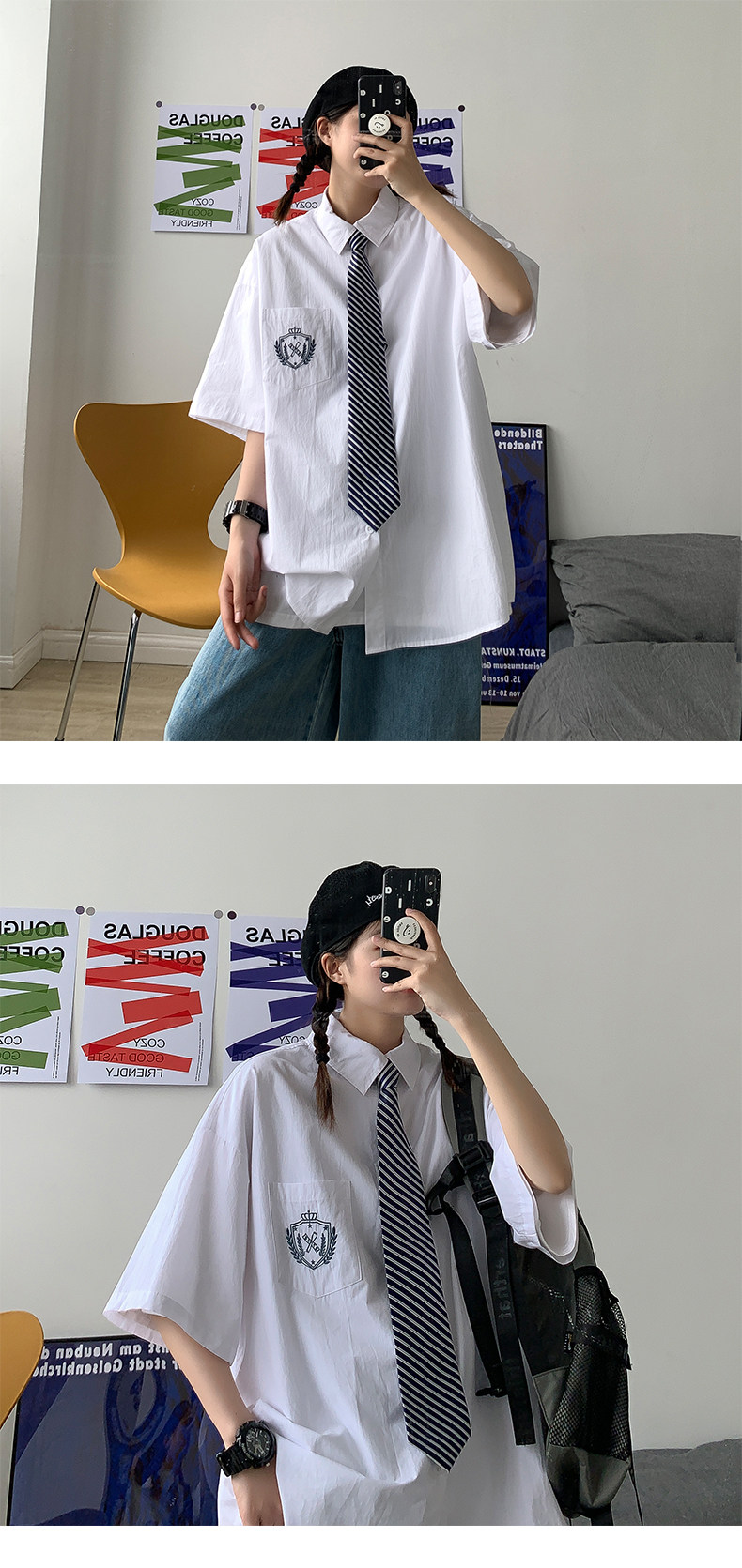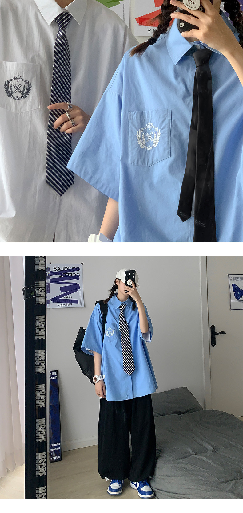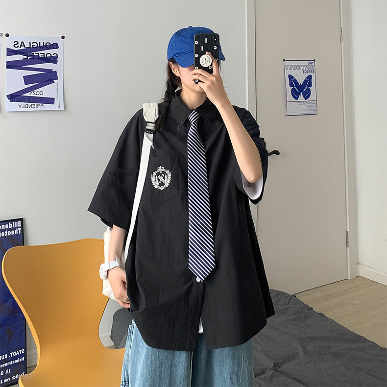 Трендовая рубашка, тонкая дизайнерская униформа для влюбленных, свободный крой, тренд сезона