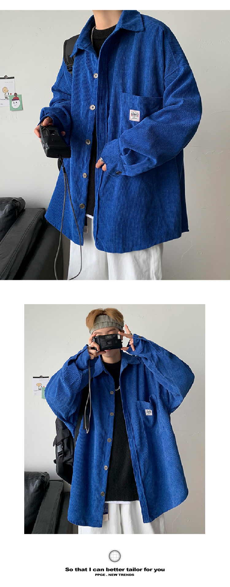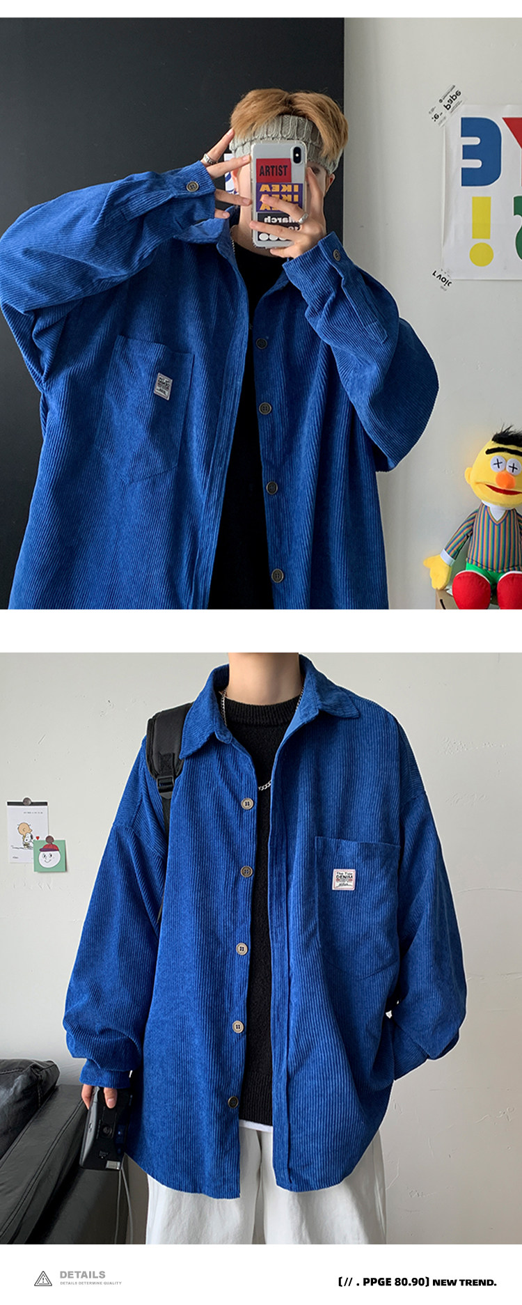 Осенняя японская трендовая рубашка, вельветовая куртка, оверсайз, размер