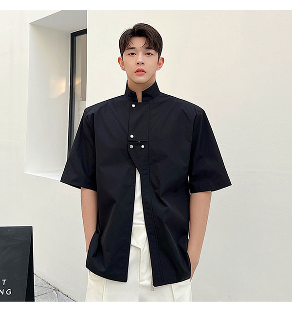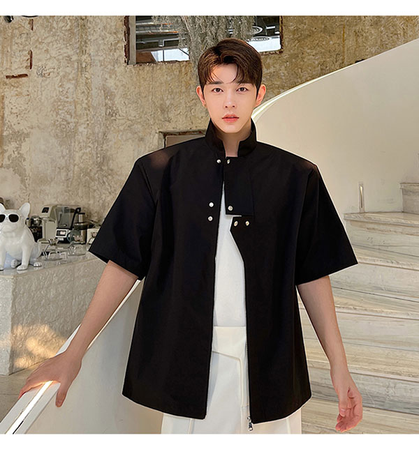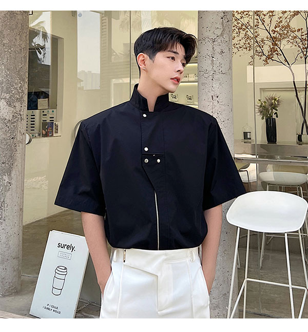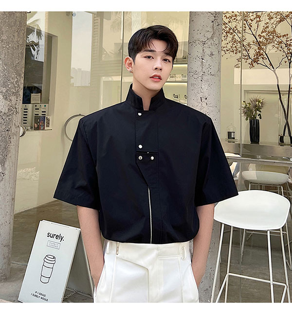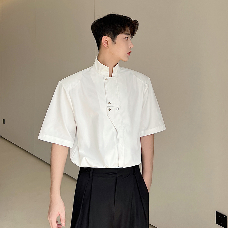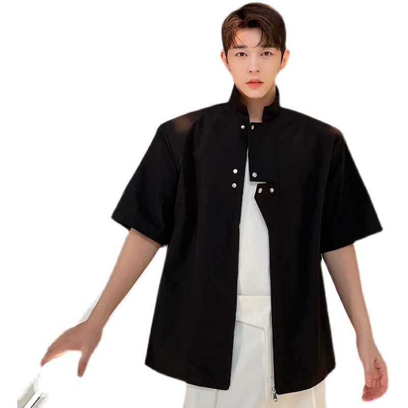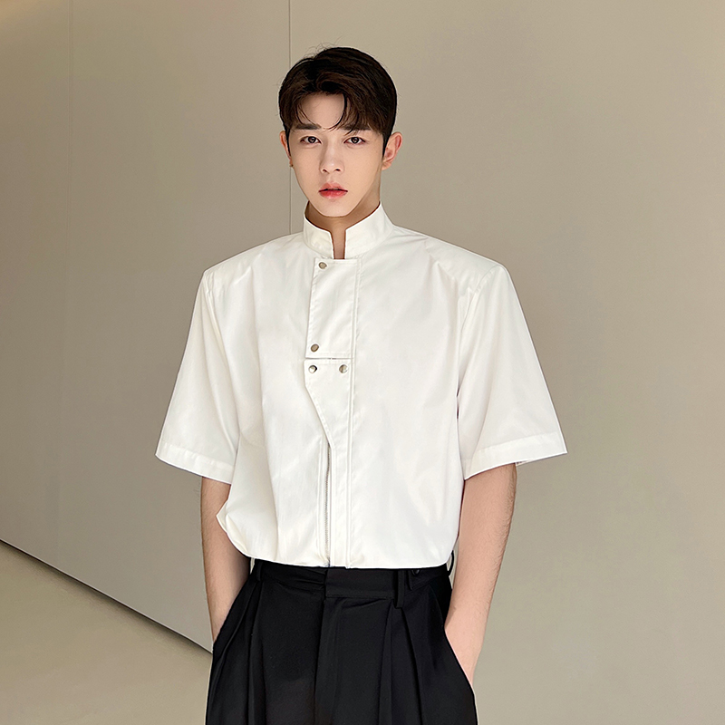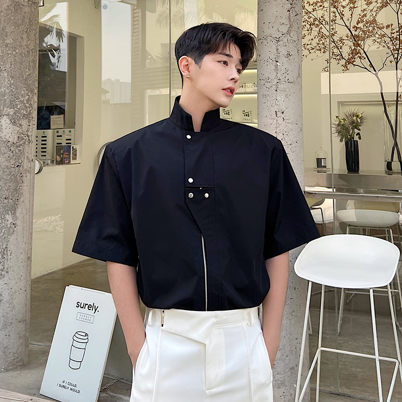 Летняя металлическая дизайнерская рубашка с молнией, в корейском стиле, тренд сезона