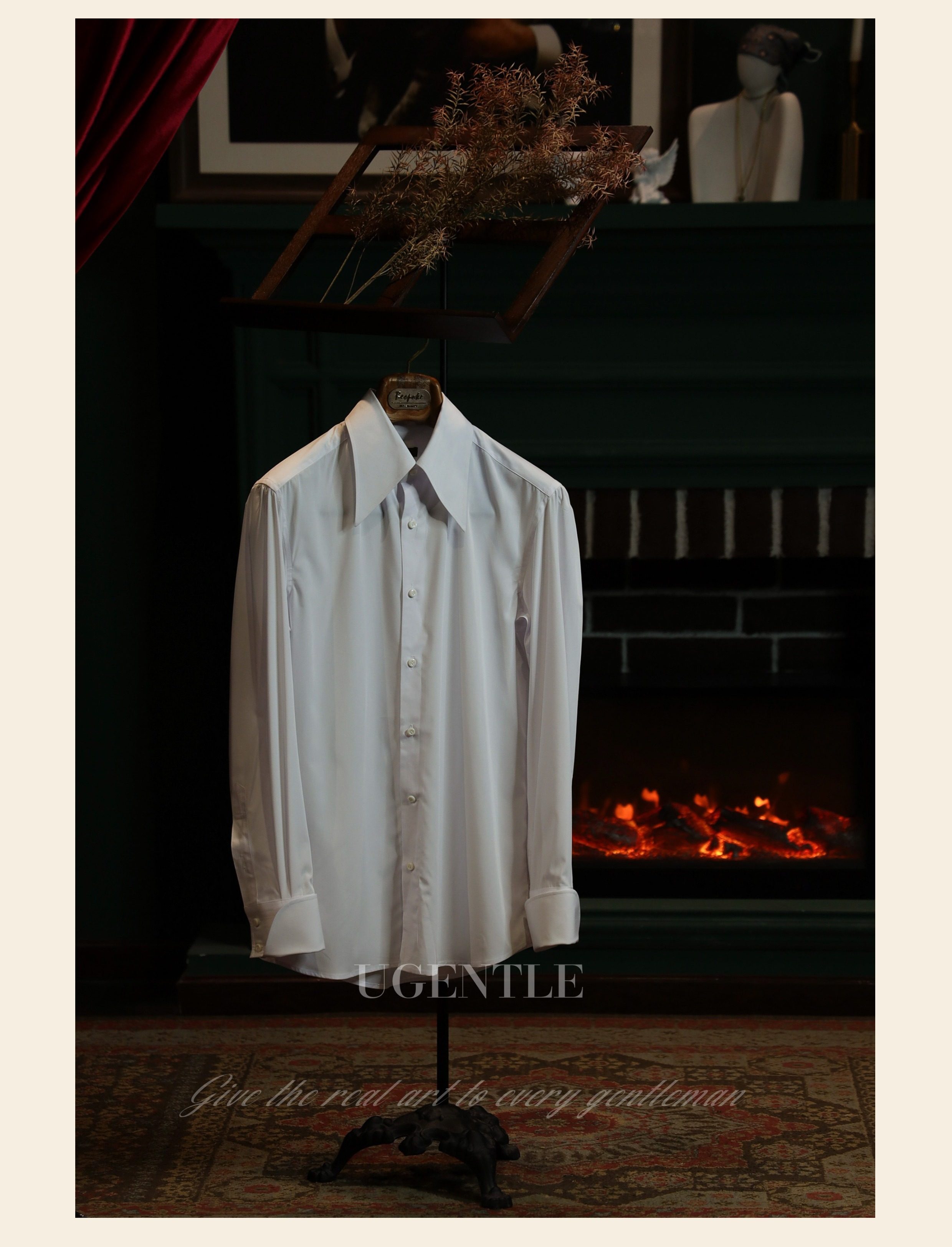 Итальянская мужская рубашка в стиле ретро, элегантный белый длинный остроконечный воротник, деловая рубашка из бамбукового волокна без глажки