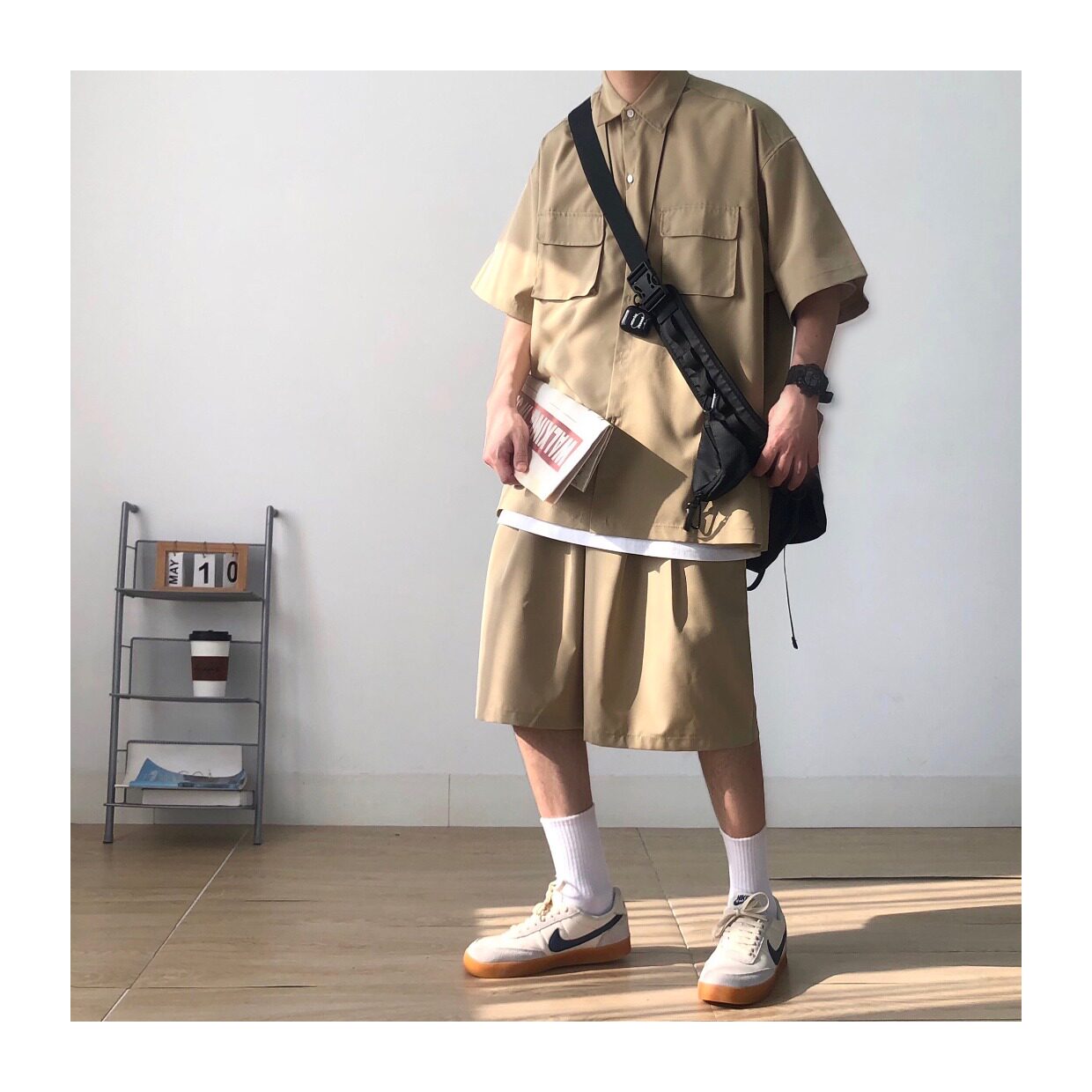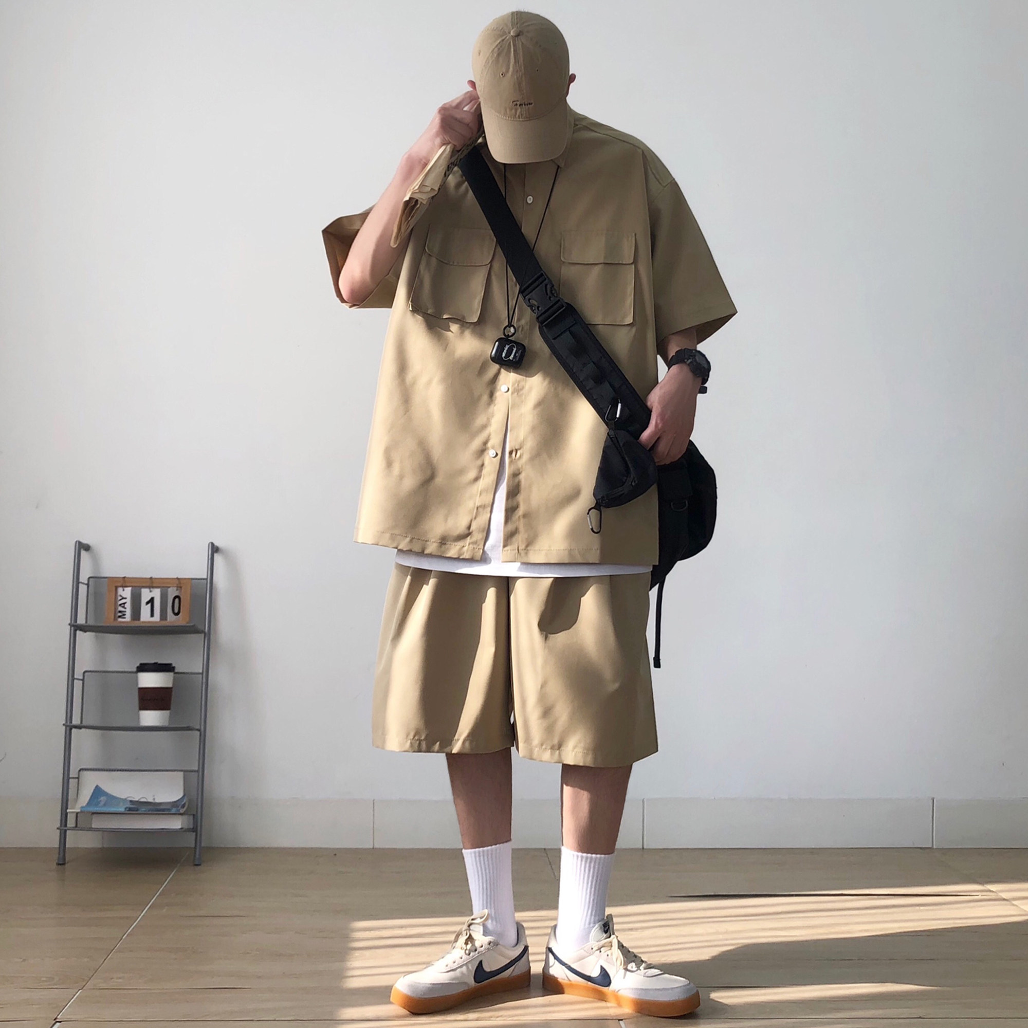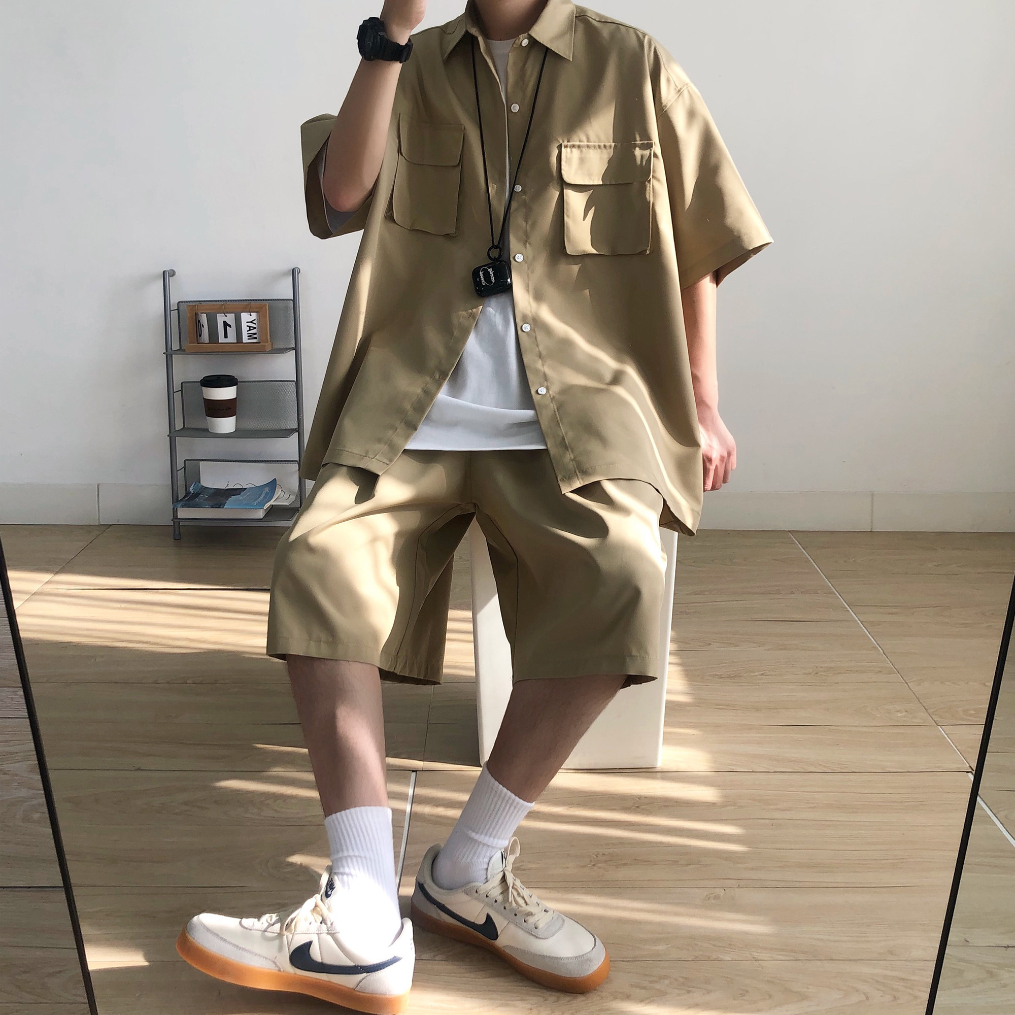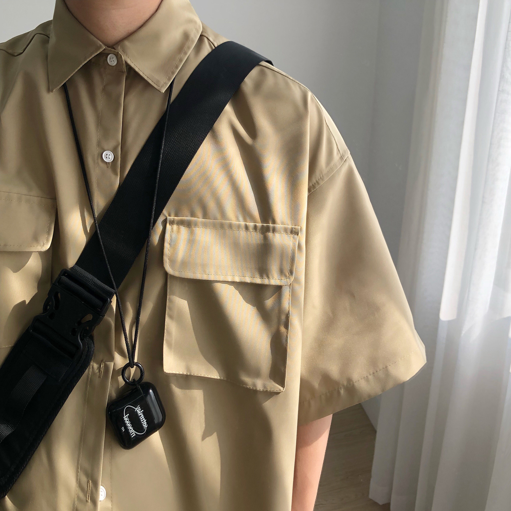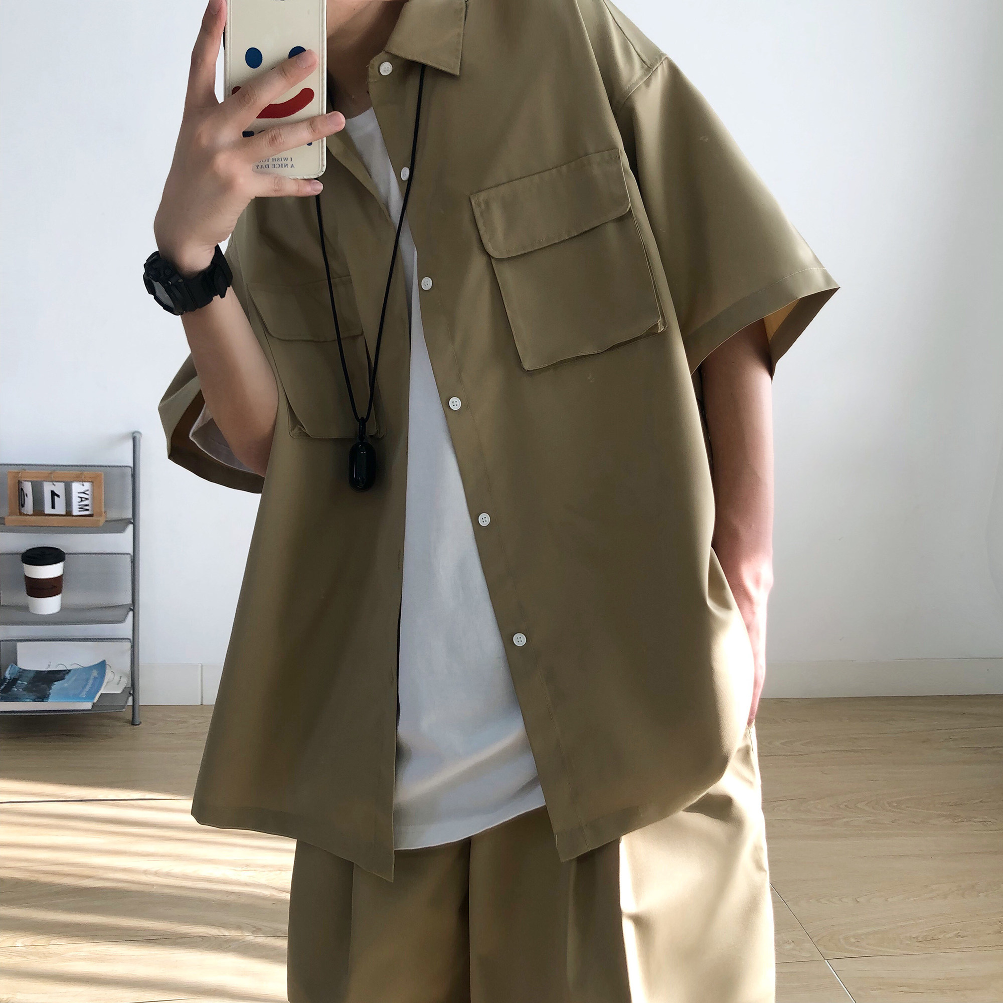 Tide, летняя хаки японская мужская рубашка, короткий рукав, свободный крой