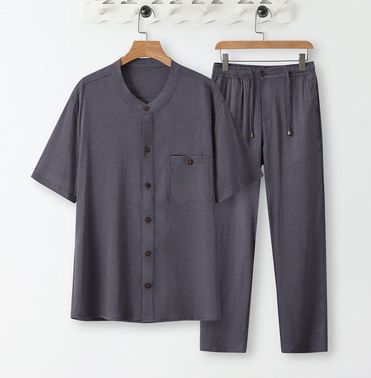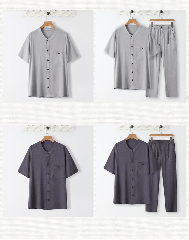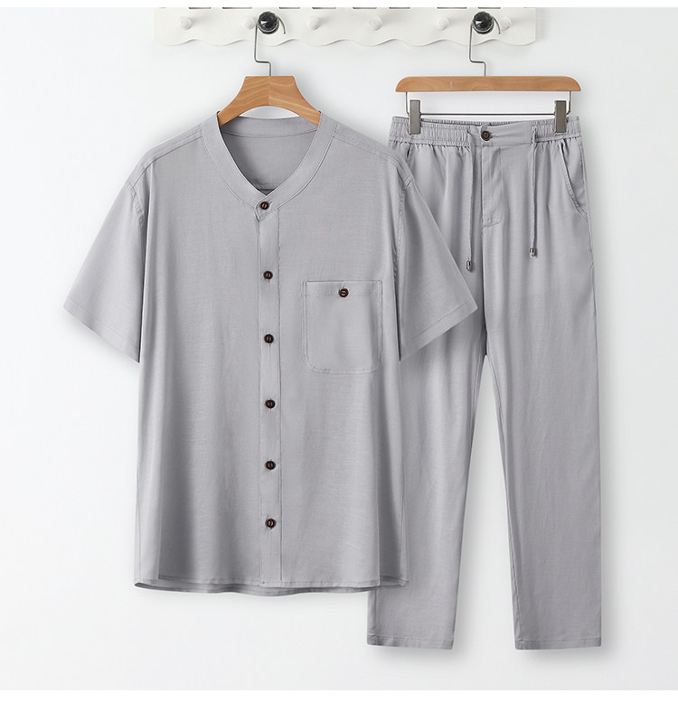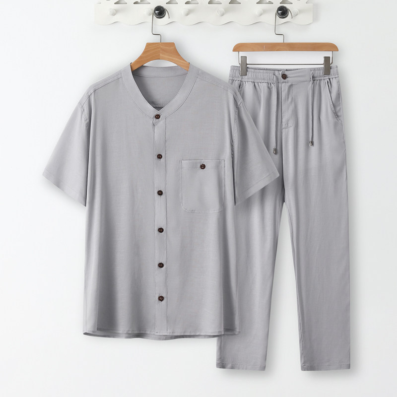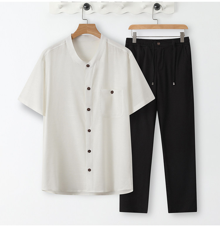 Летний тонкий комплект, шелковая рубашка, оверсайз, китайский стиль, из хлопка и льна