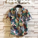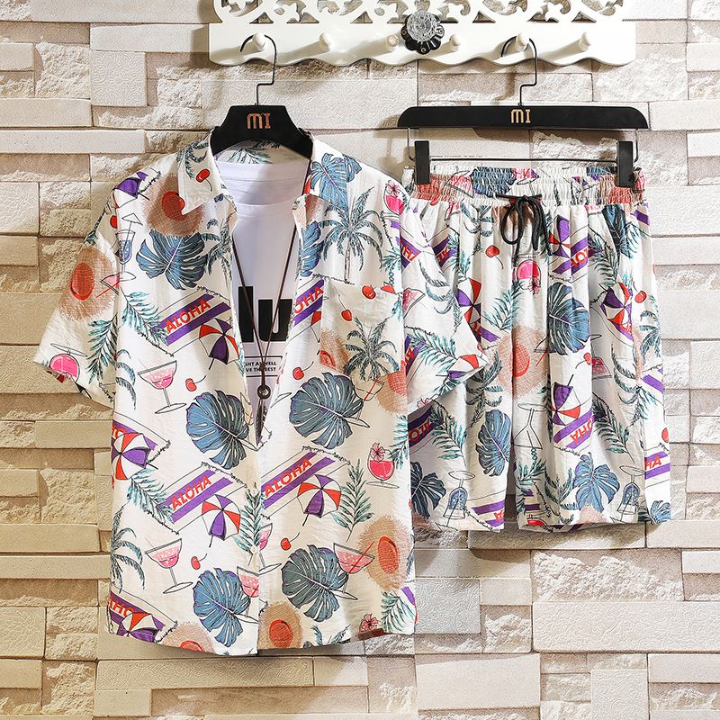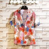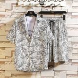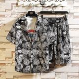 Шелковая рубашка, мужской трендовый пляжный комплект для отдыха для влюбленных, оверсайз, цветочный принт, короткий рукав