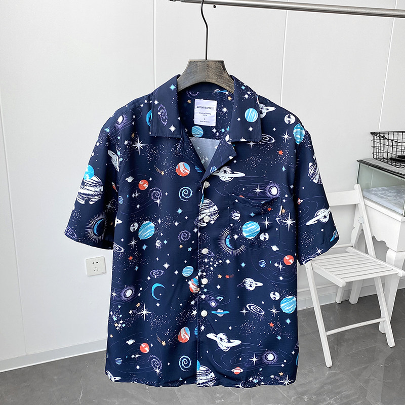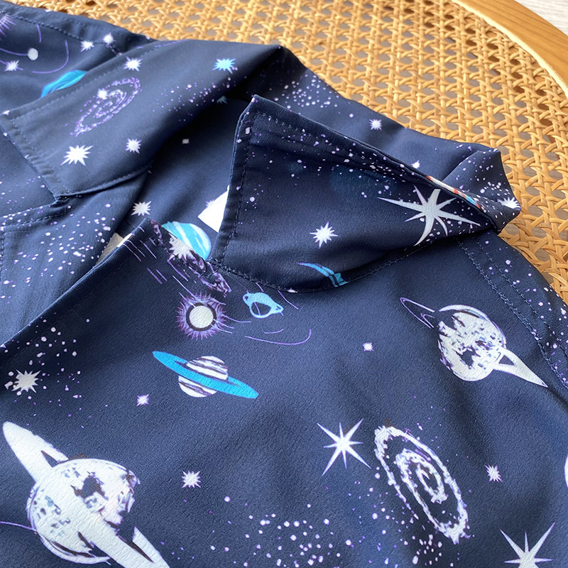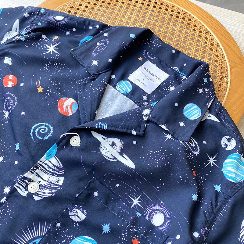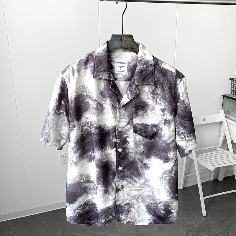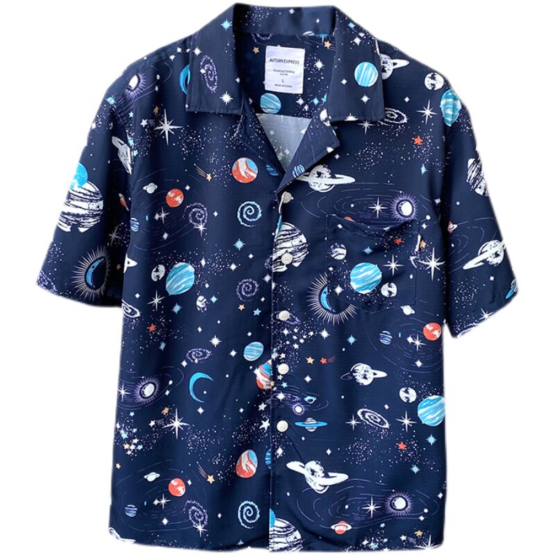 Дизайнерская японская ретро летняя шелковистая рубашка, короткий рукав