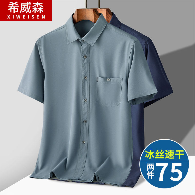 Летняя рубашка, шелковая футболка, летняя одежда, для мужчины среднего возраста, свободный крой