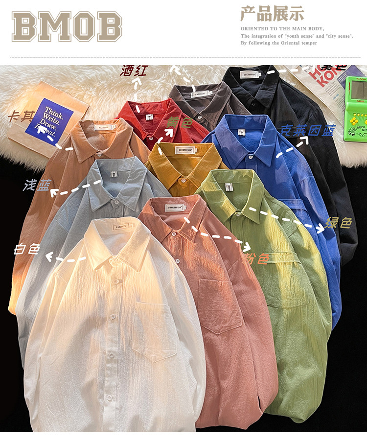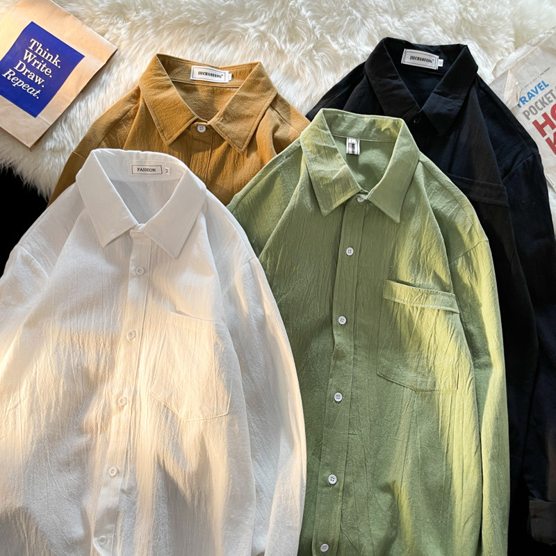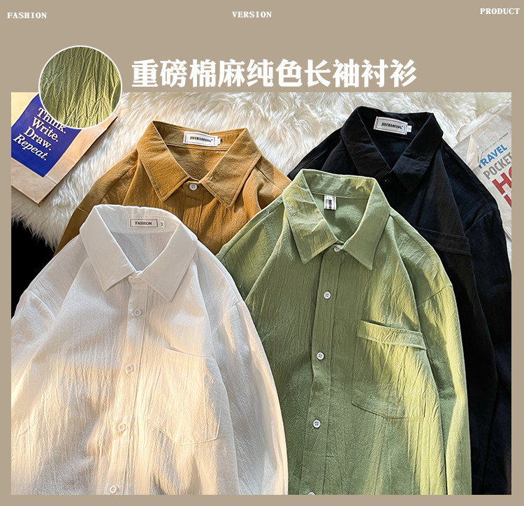 Tide, рубашка для отдыха, из хлопка и льна, осенняя, оверсайз, в корейском стиле