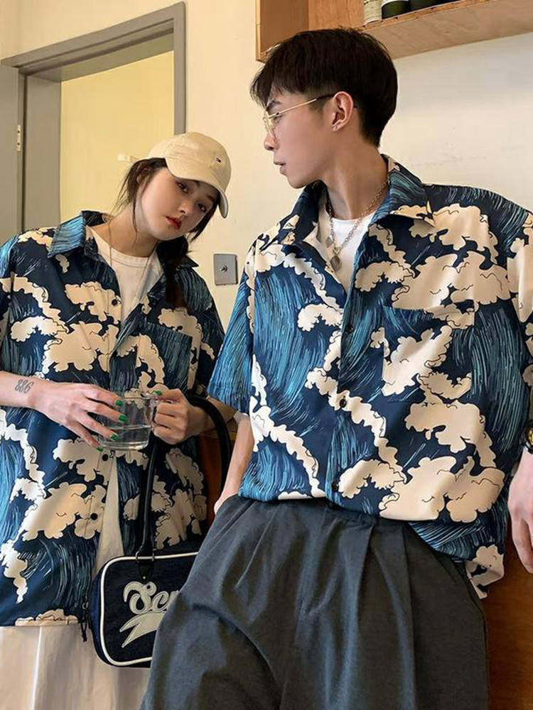 Летняя тонкая рубашка, пляжная парная одежда для влюбленных, короткий рукав, свободный крой
