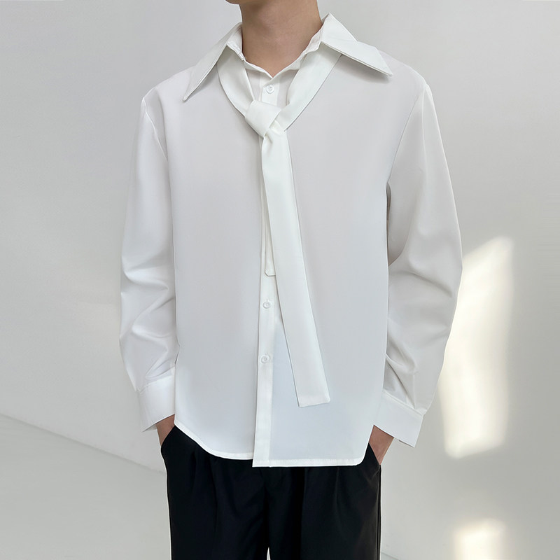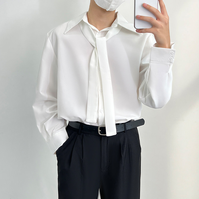 Галстук, дизайнерские наплечники, белая рубашка, изысканный стиль, свободный крой, французский стиль