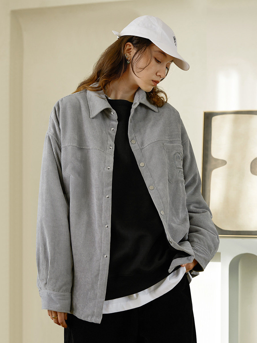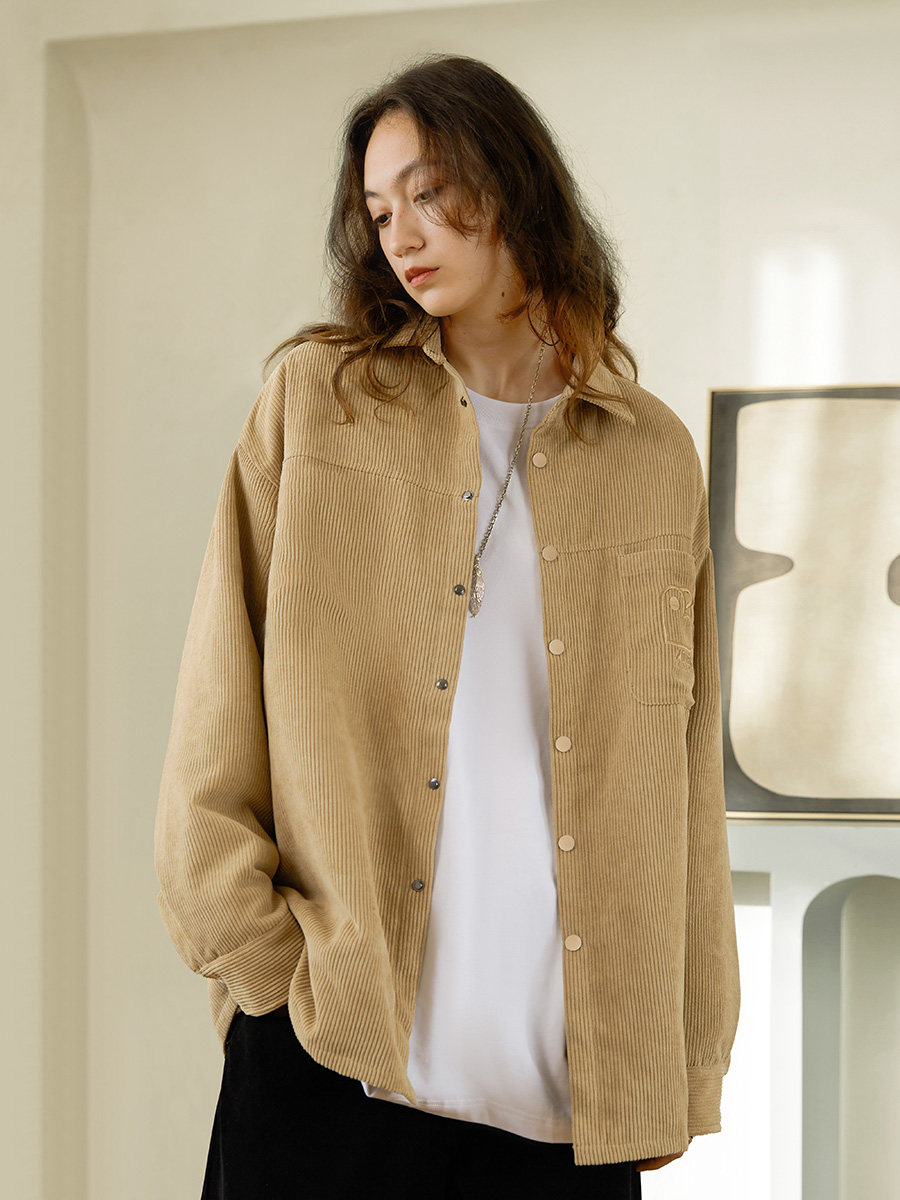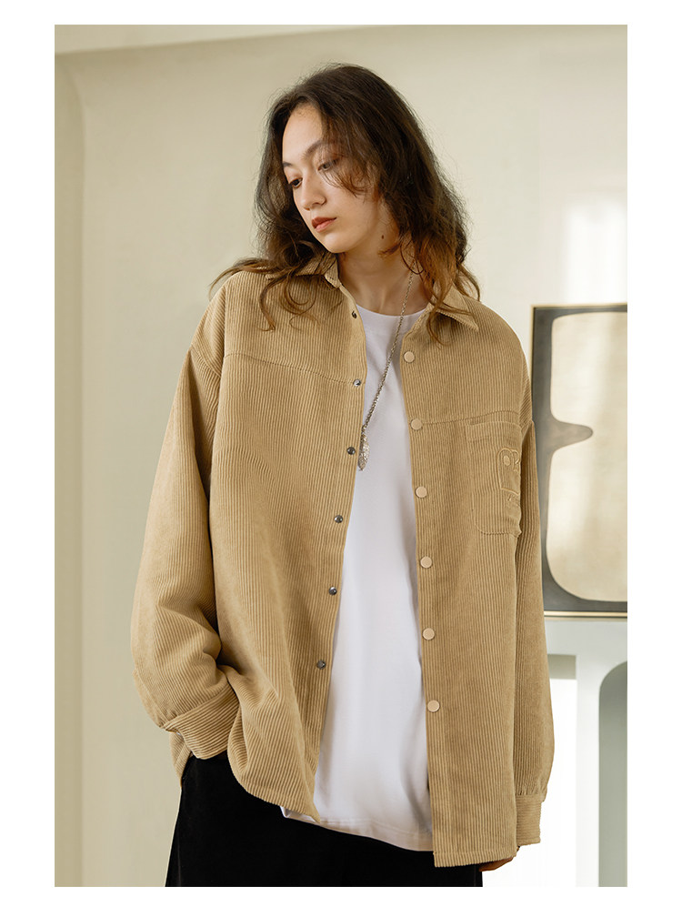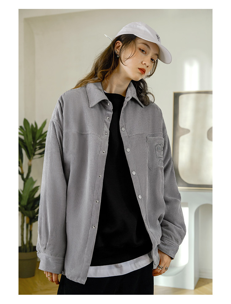 Стеганая демисезонная вельветовая рубашка, ретро утепленный лонгслив для влюбленных, увеличенная толщина, с вышивкой