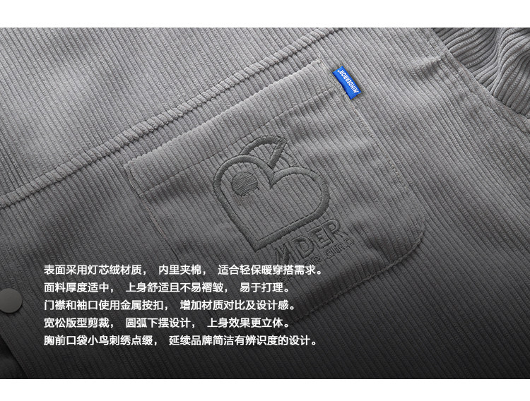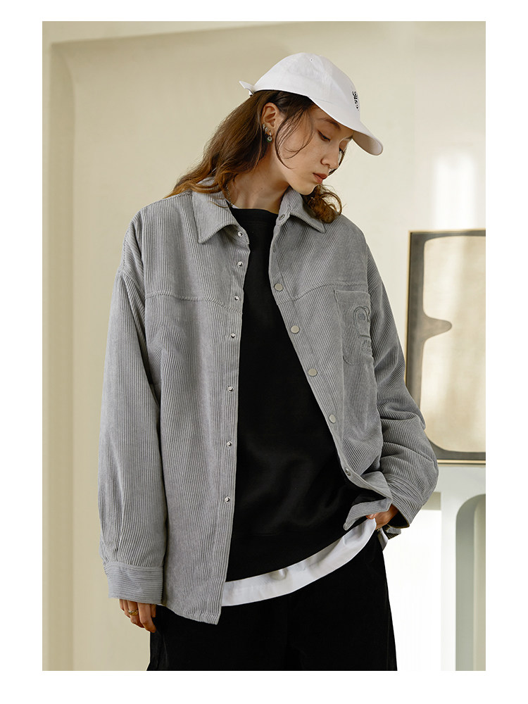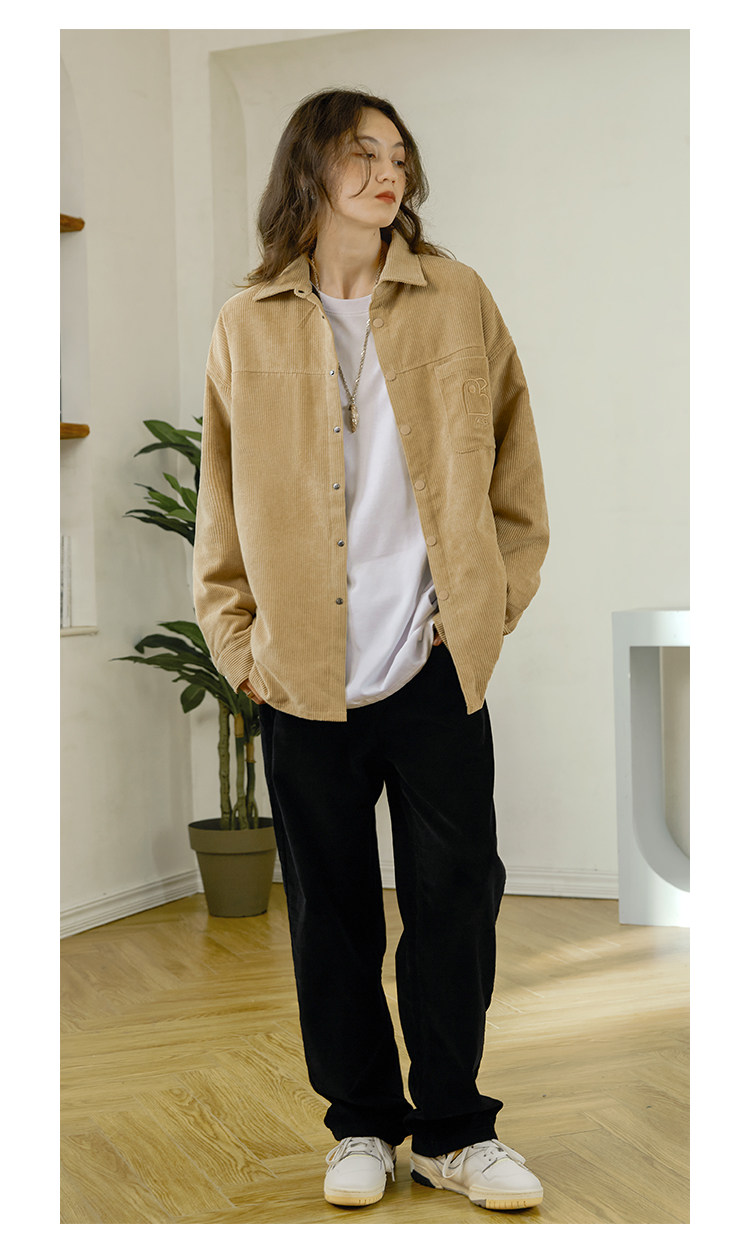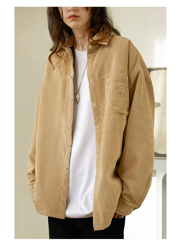 Стеганая демисезонная вельветовая рубашка, ретро утепленный лонгслив для влюбленных, увеличенная толщина, с вышивкой