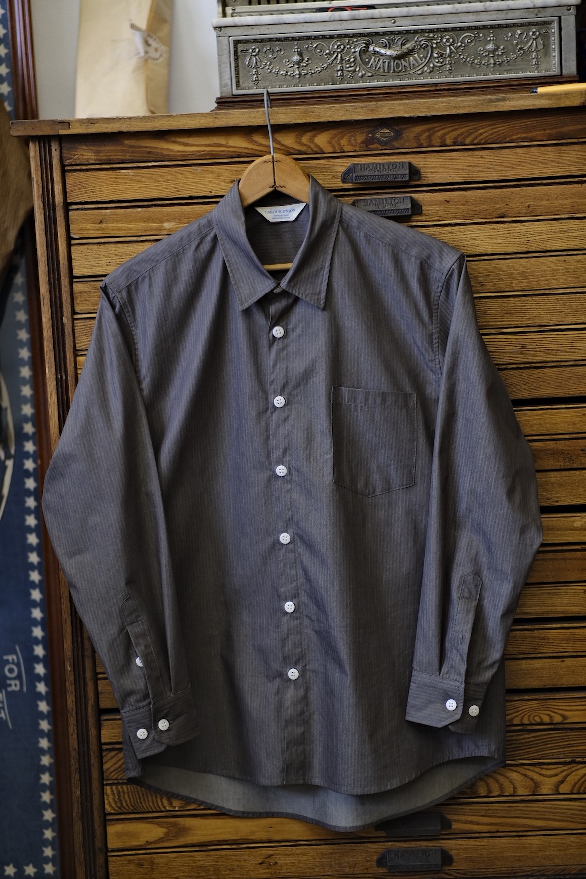 Древняя канхжжэн -профсоюз импортированная ткань наклонная полоса с длинной рубашкой осень и зимняя базовая модель Lu654