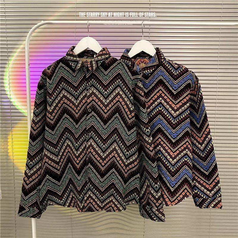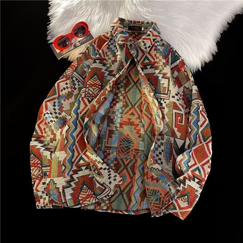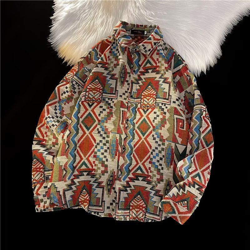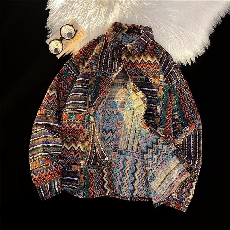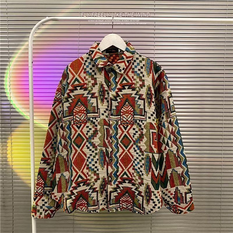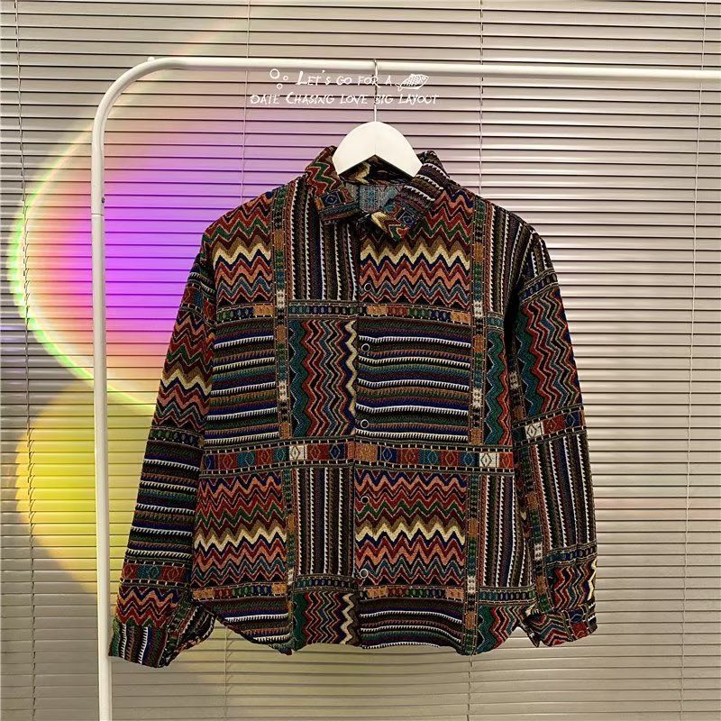 Ретро этническая шерстяная демисезонная рубашка, этнический стиль, свободный крой