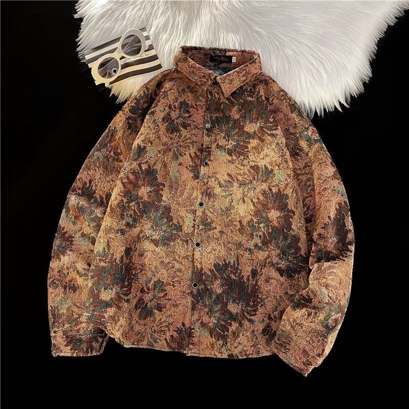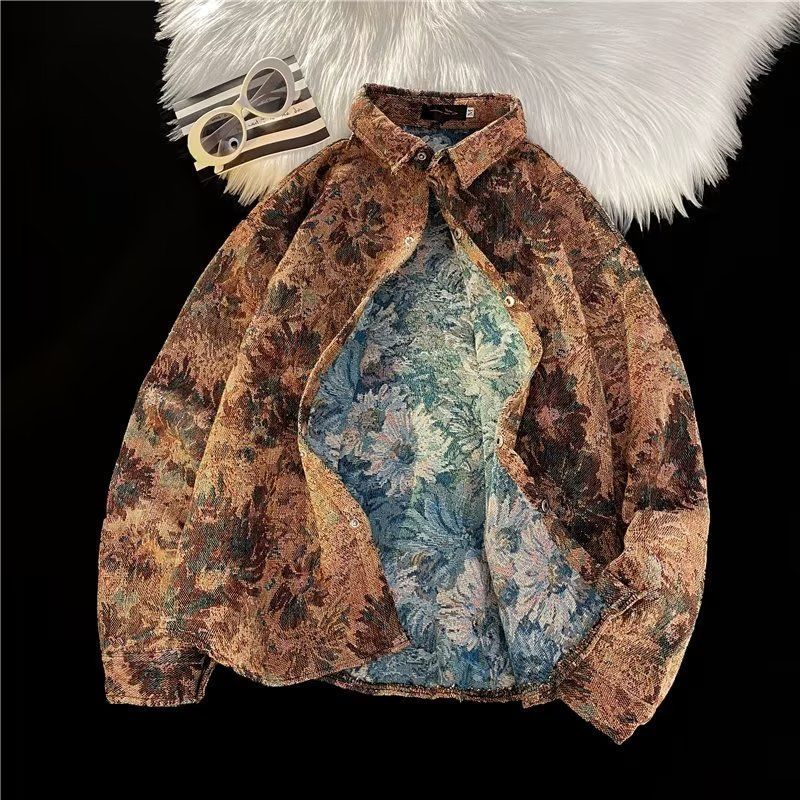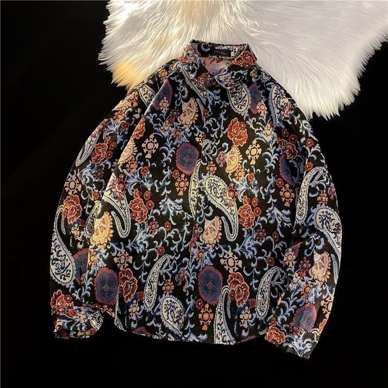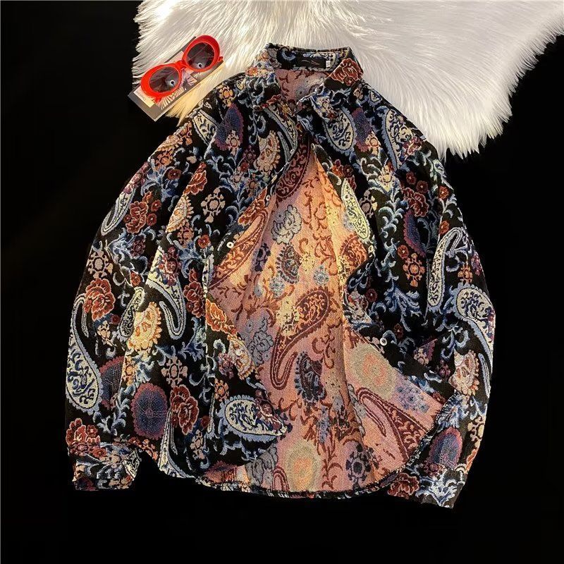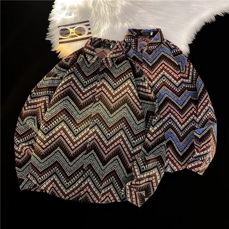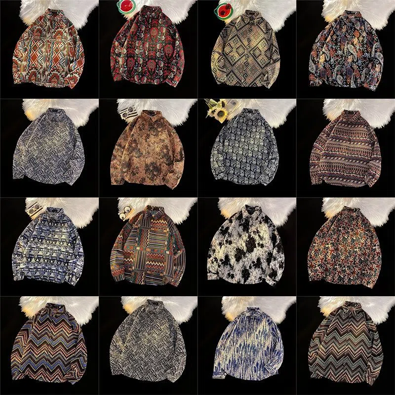 Ретро этническая шерстяная демисезонная рубашка, этнический стиль, свободный крой