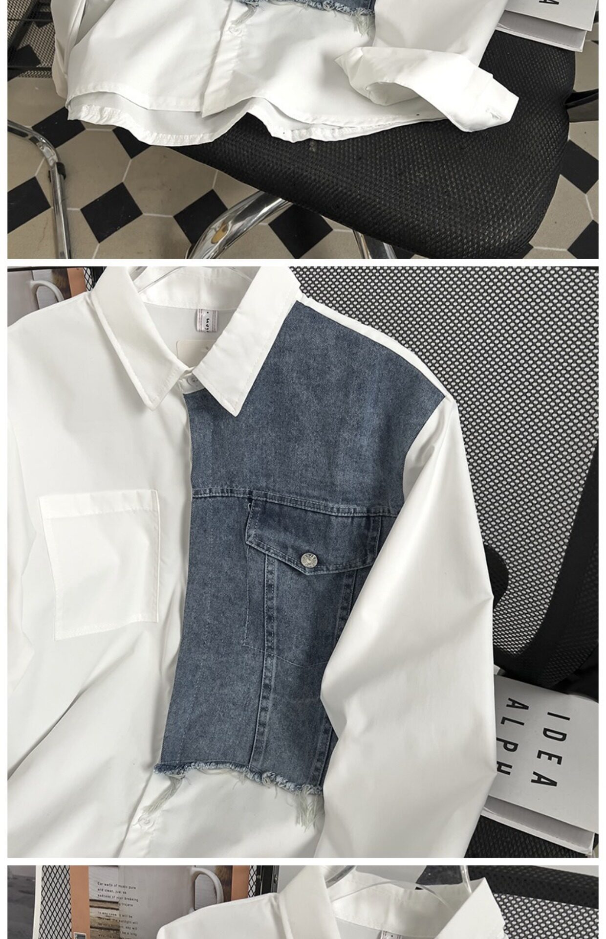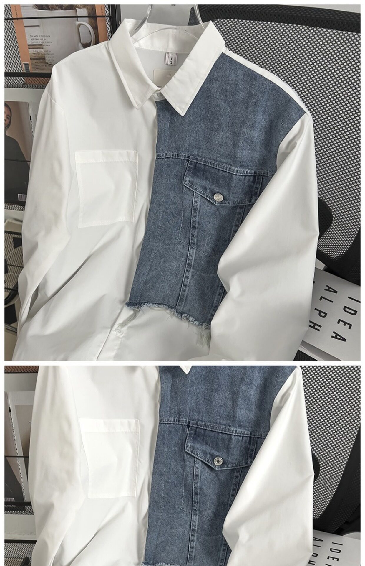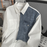 Японская джинсовая небольшая дизайнерская рубашка для влюбленных для отдыха, тренд сезона, оверсайз