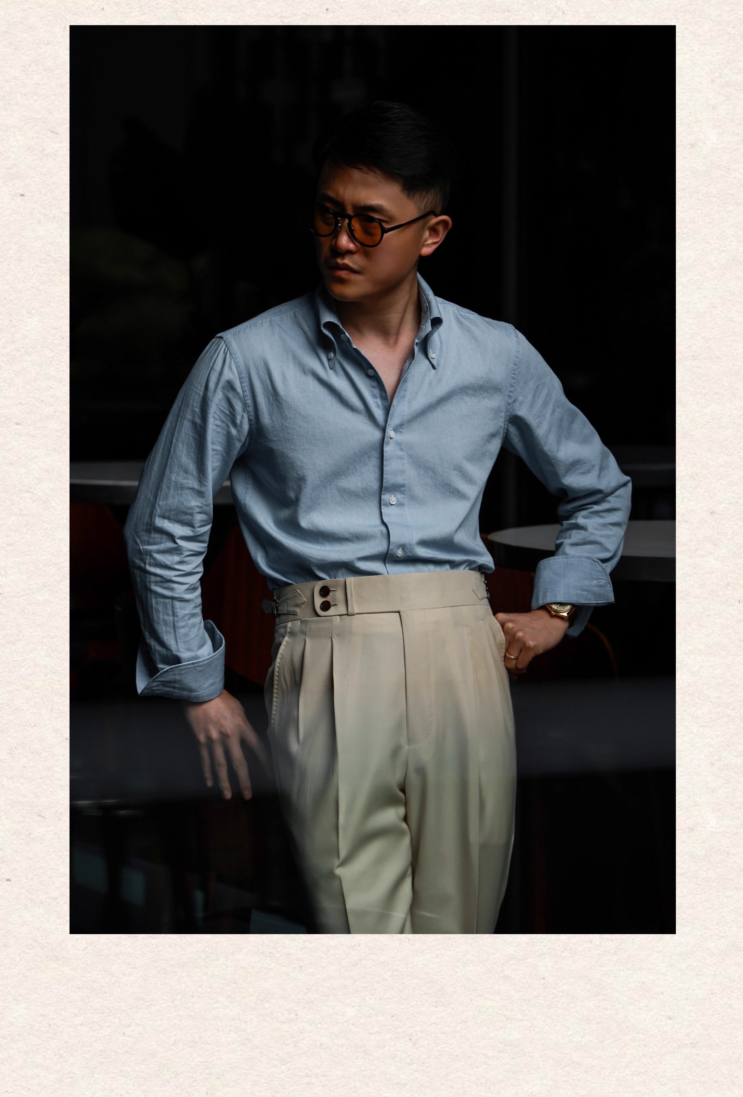 UG Men's Men Brand Process Процесс промывки воды для промывки тунина ретро-пряжка на пуговицах джинсовая джинсовая ткань рубашка с длинными рукавами