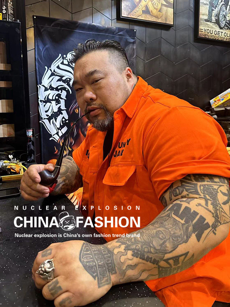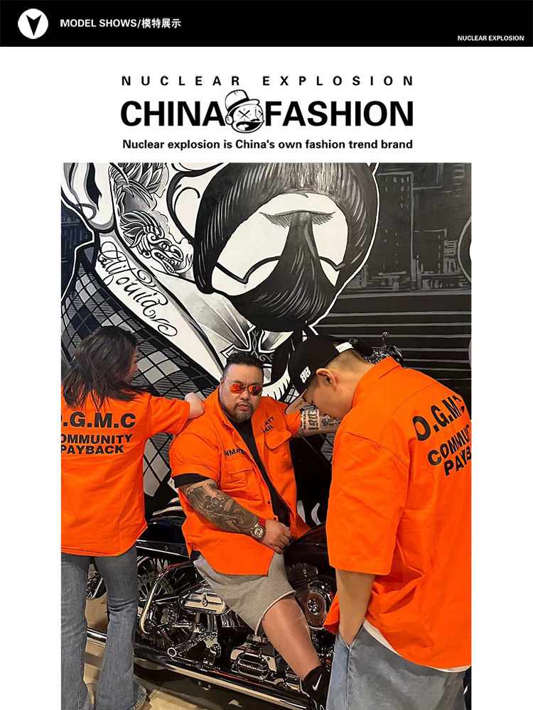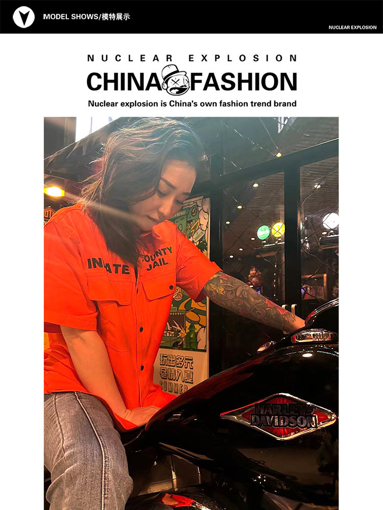 Оранжевая рубашка для отдыха, в американском стиле, оверсайз