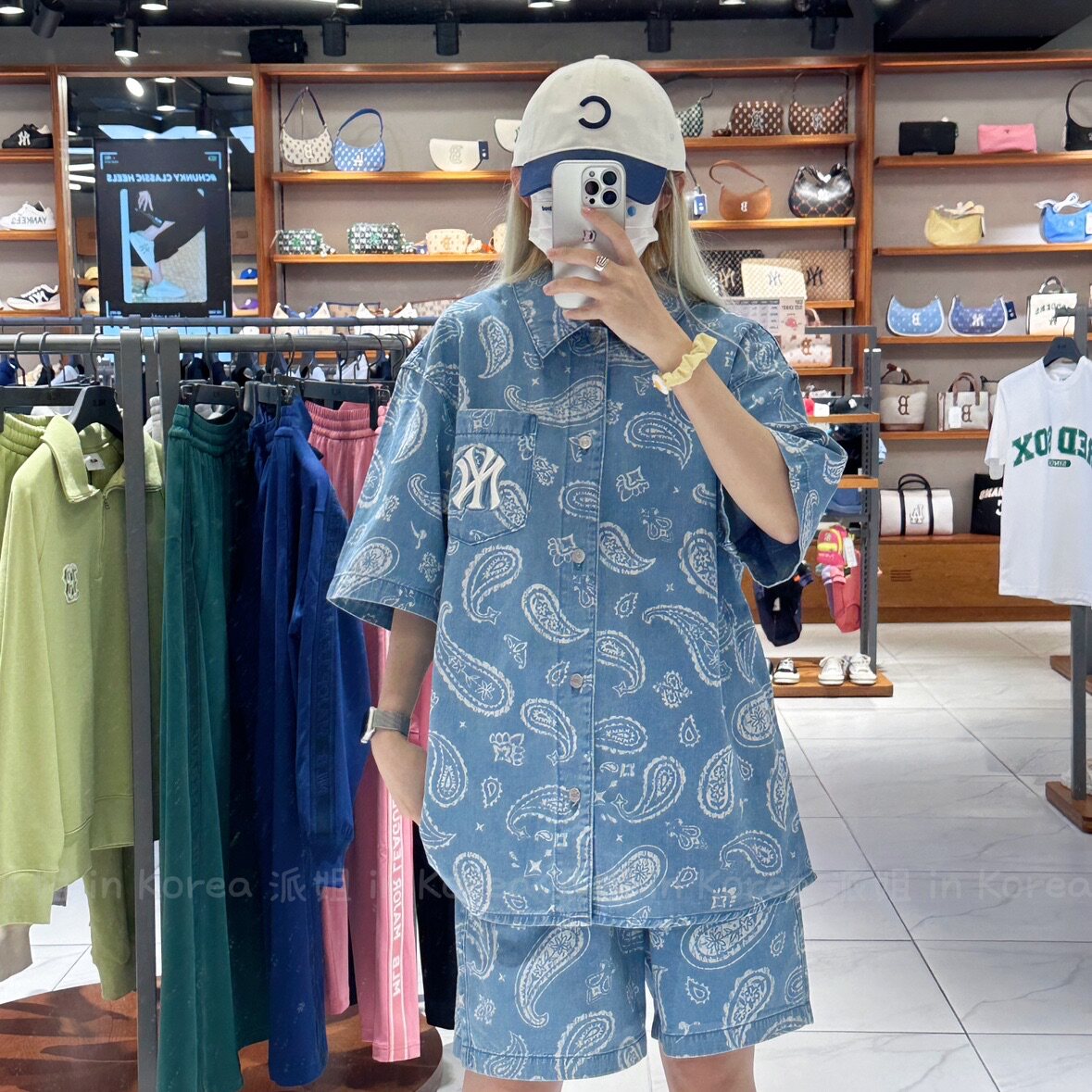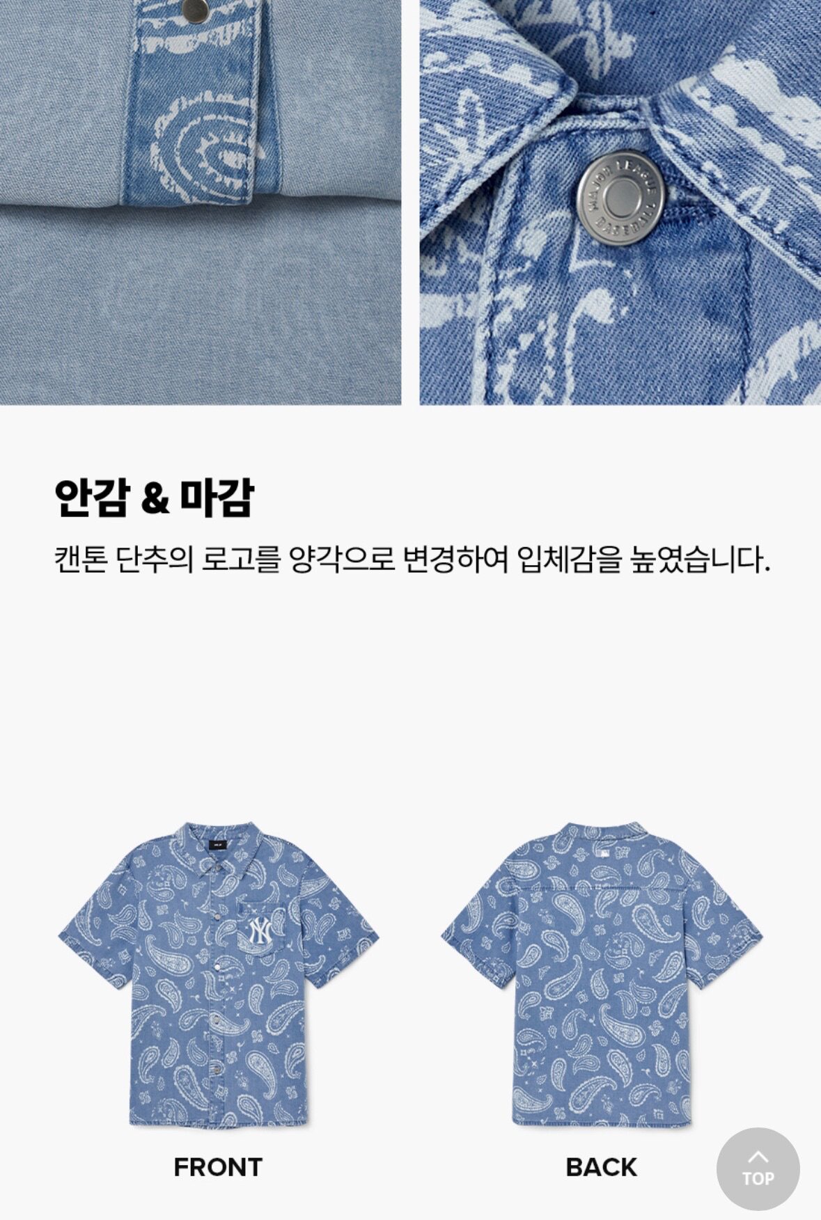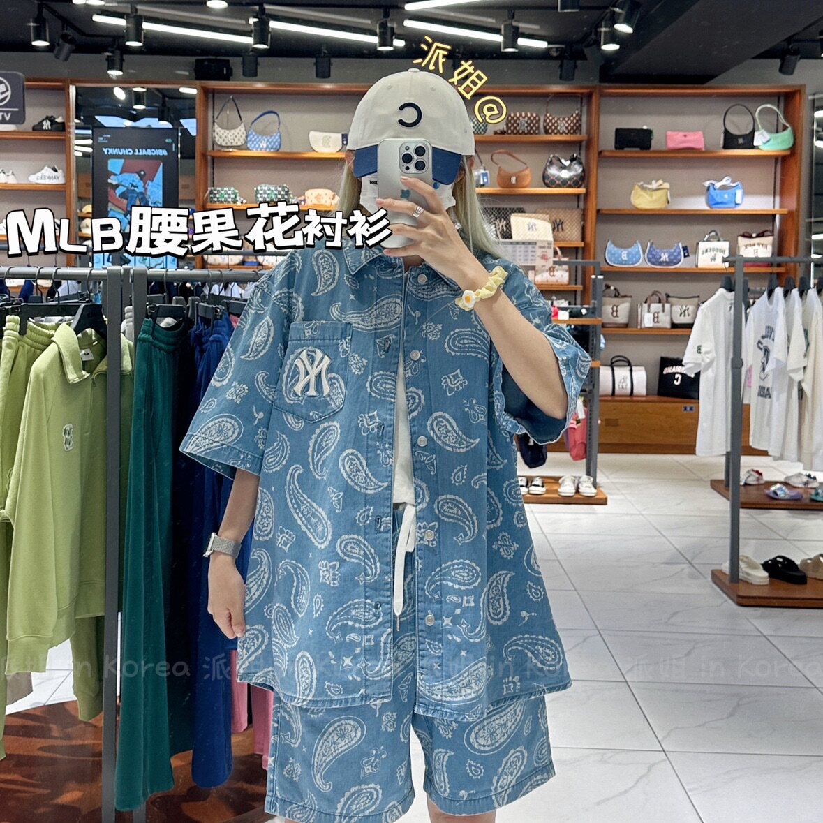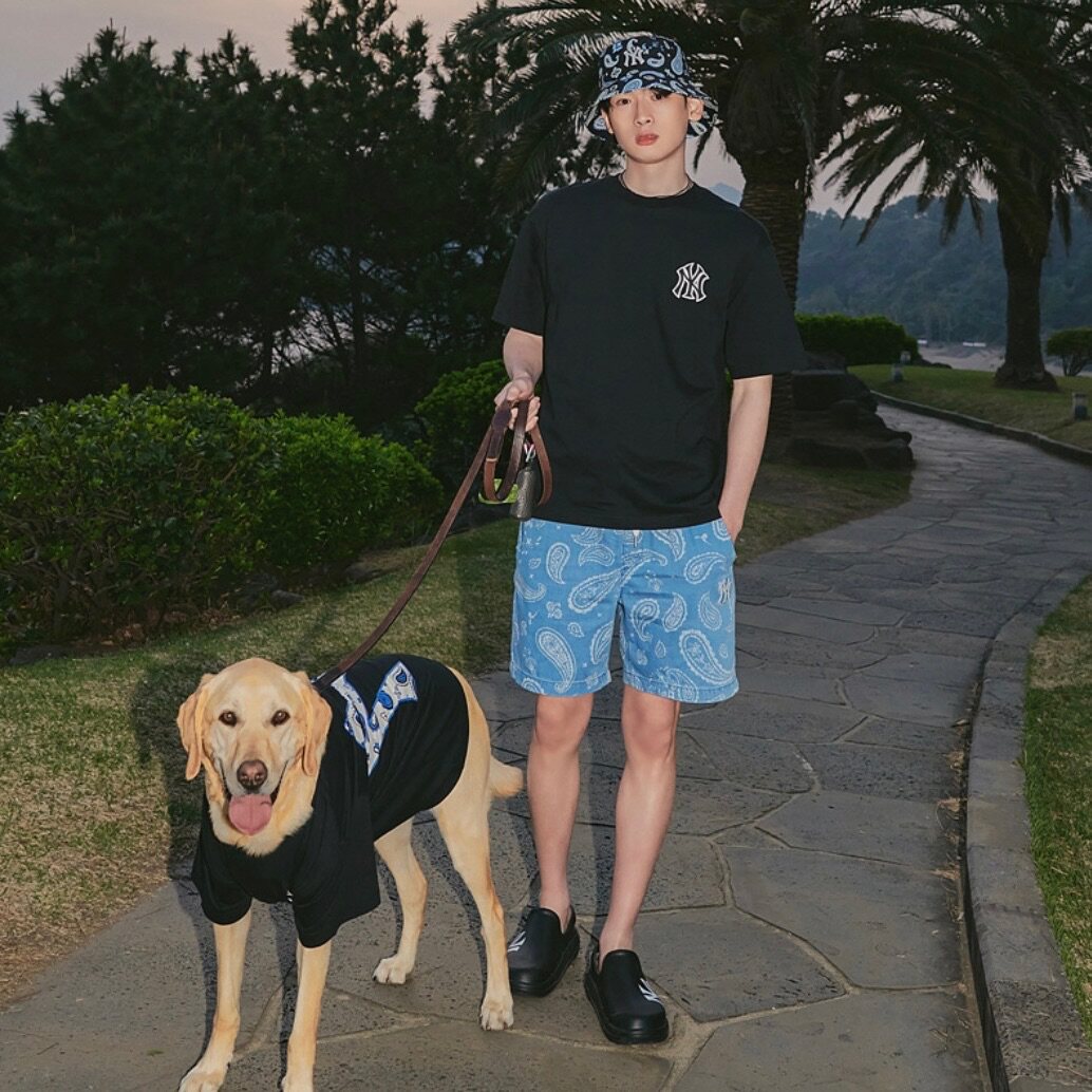 Сестра Пай в Корее MLB Корейская местная стойка с цветком кешью джинсовая рубашка с короткими рукавами для мужчин и женщин 3ADRI0133