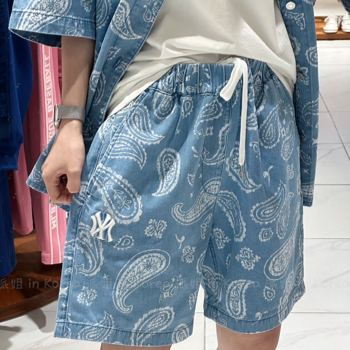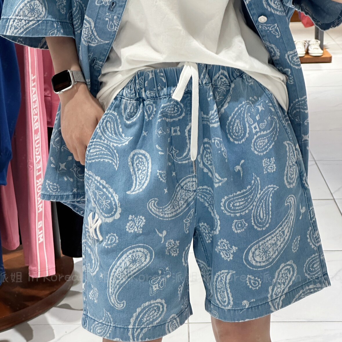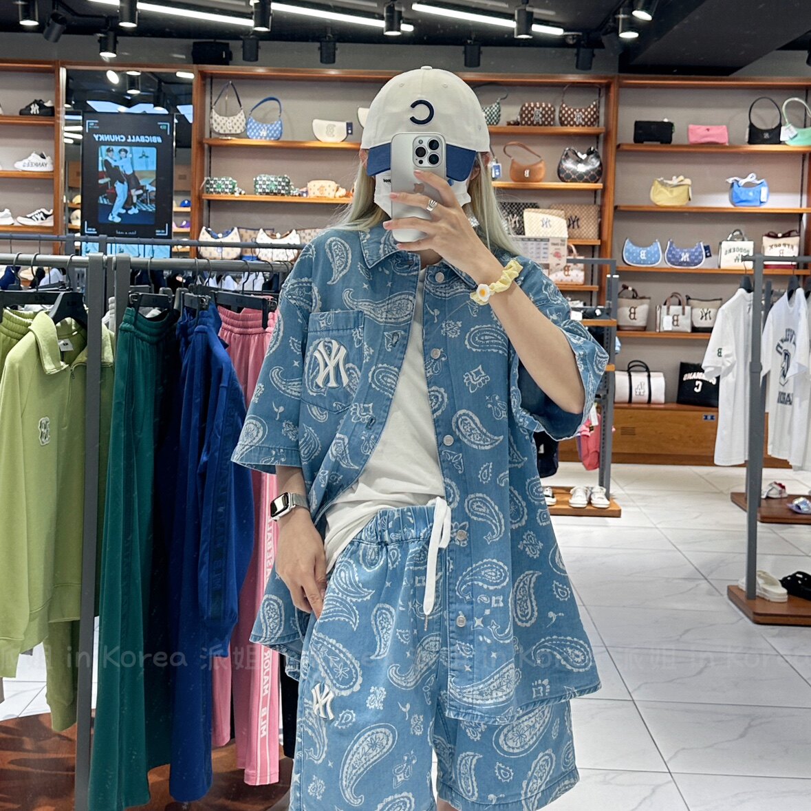 Сестра Пай в Корее MLB Корейская местная стойка с цветком кешью джинсовая рубашка с короткими рукавами для мужчин и женщин 3ADRI0133