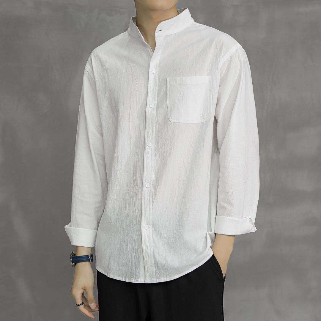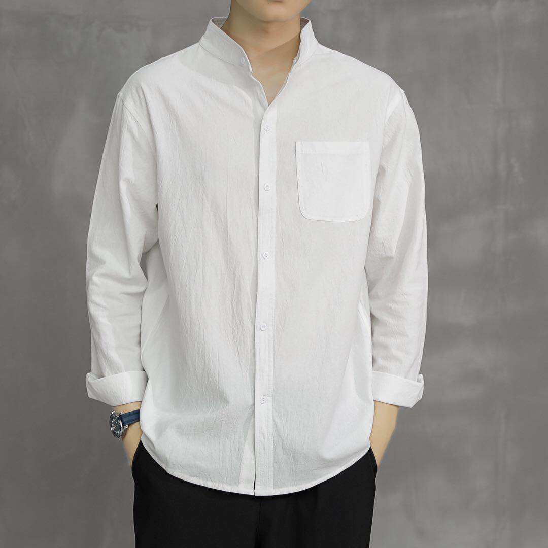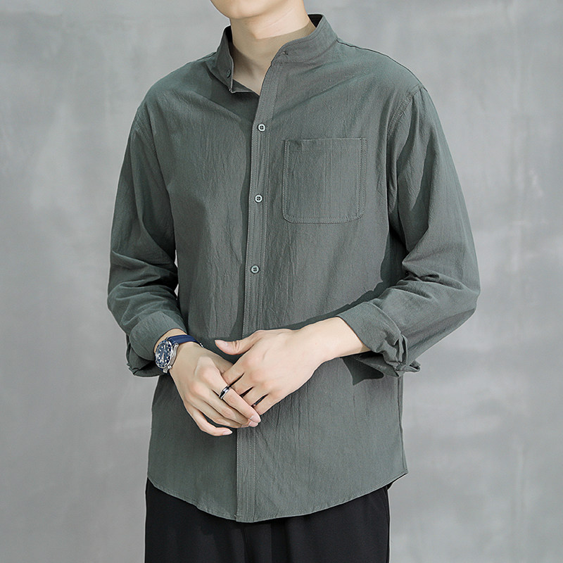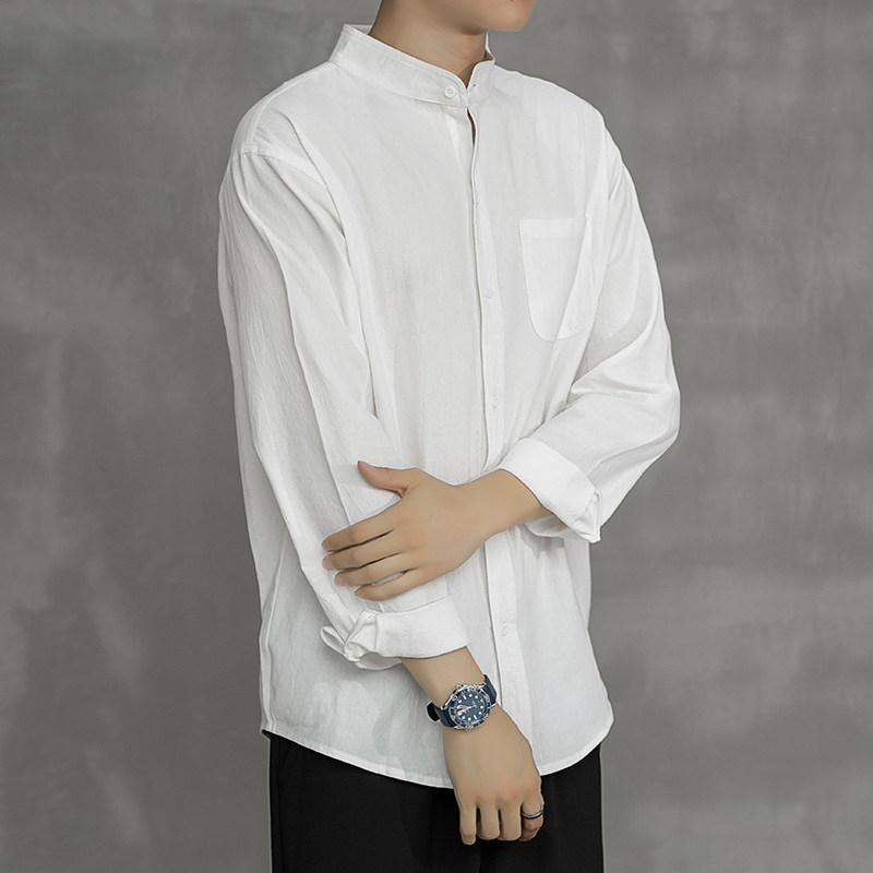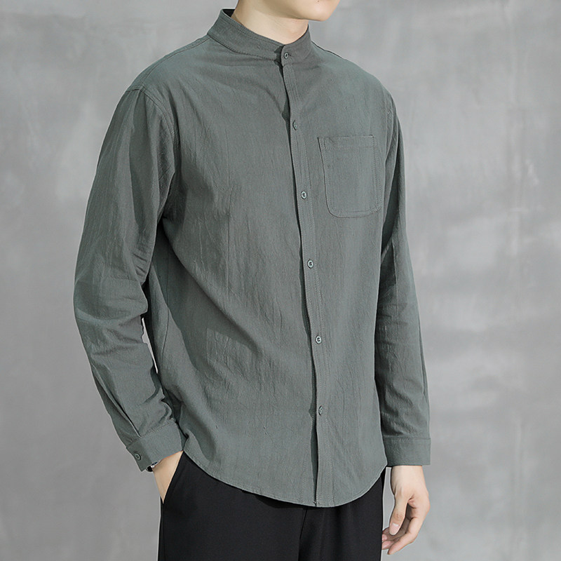 Японская рубашка для отдыха, летняя летняя одежда, свободный крой, из хлопка и льна
