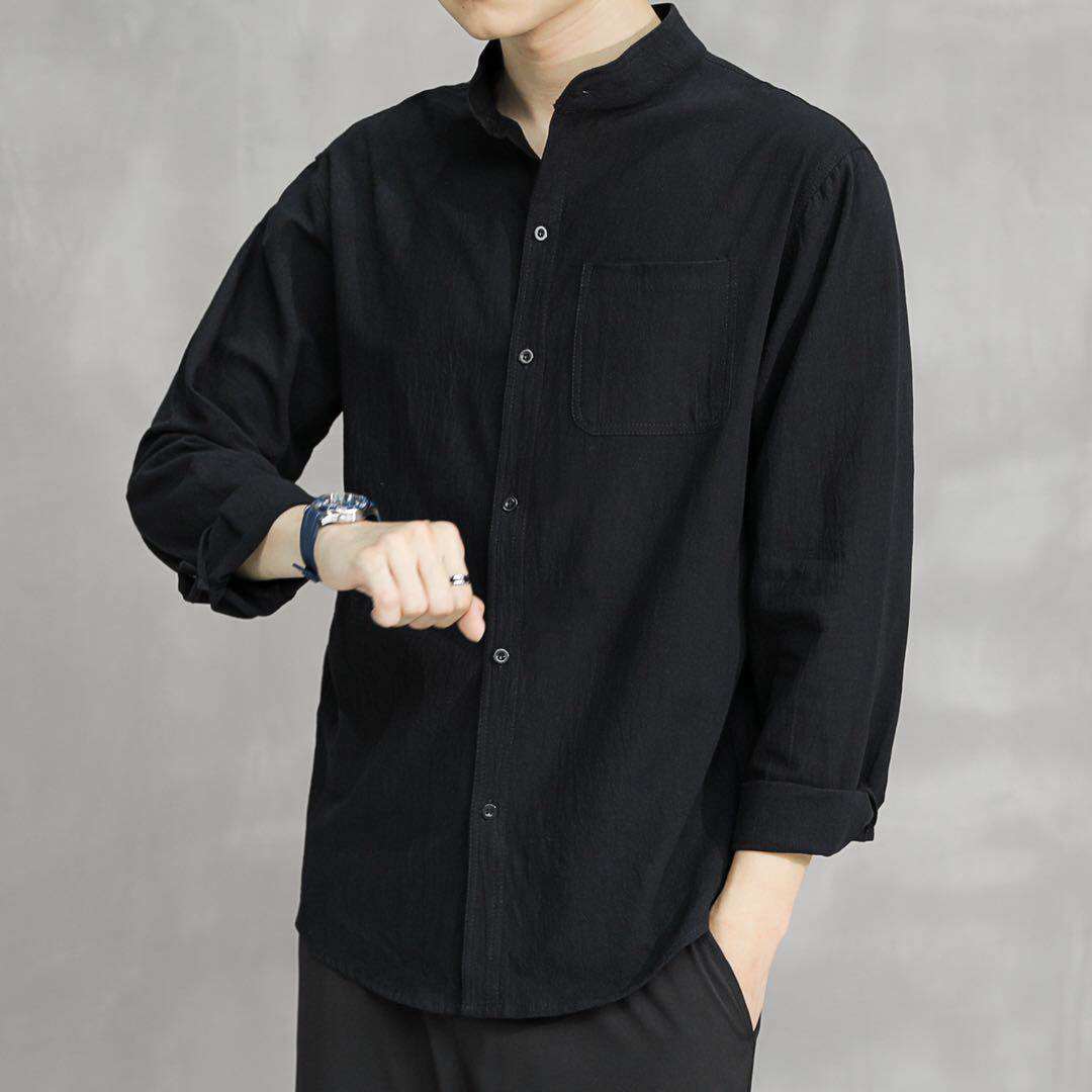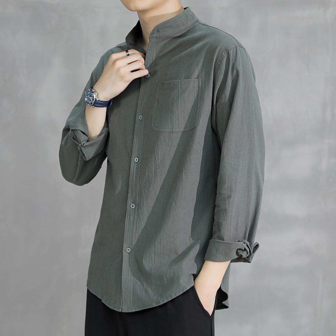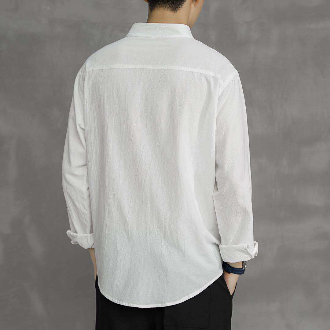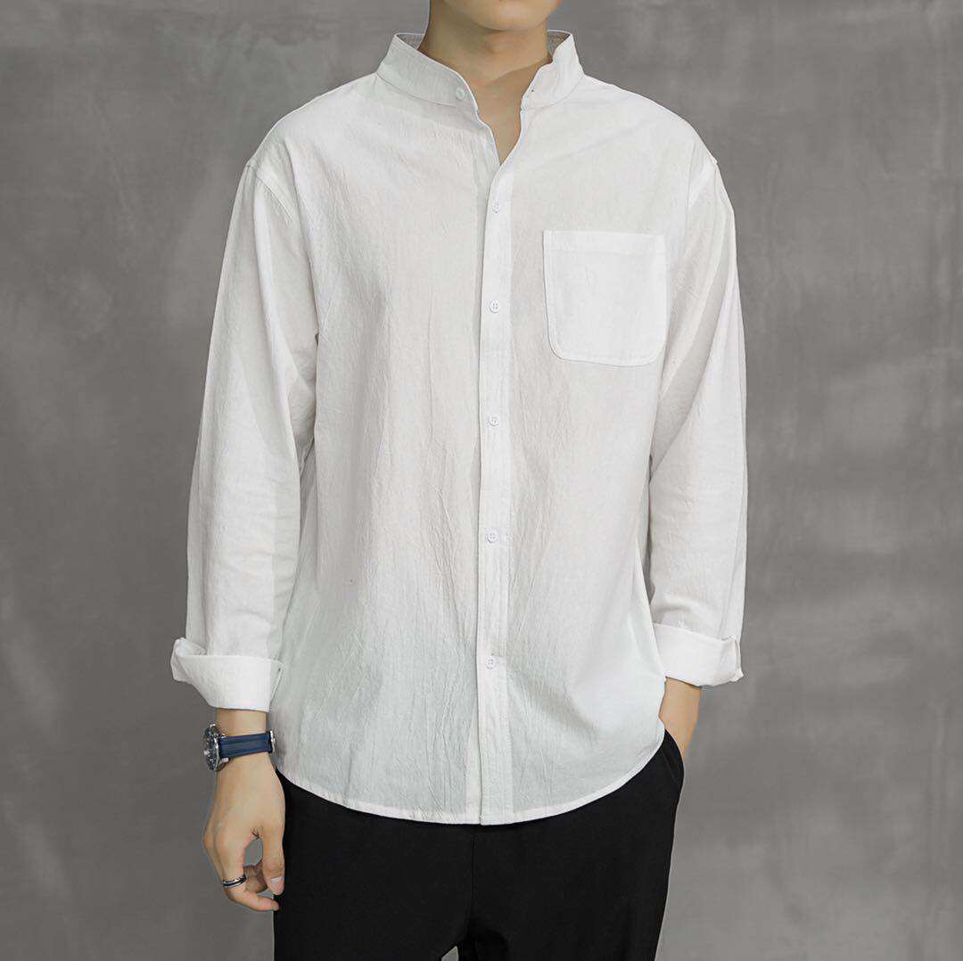 Японская рубашка для отдыха, летняя летняя одежда, свободный крой, из хлопка и льна