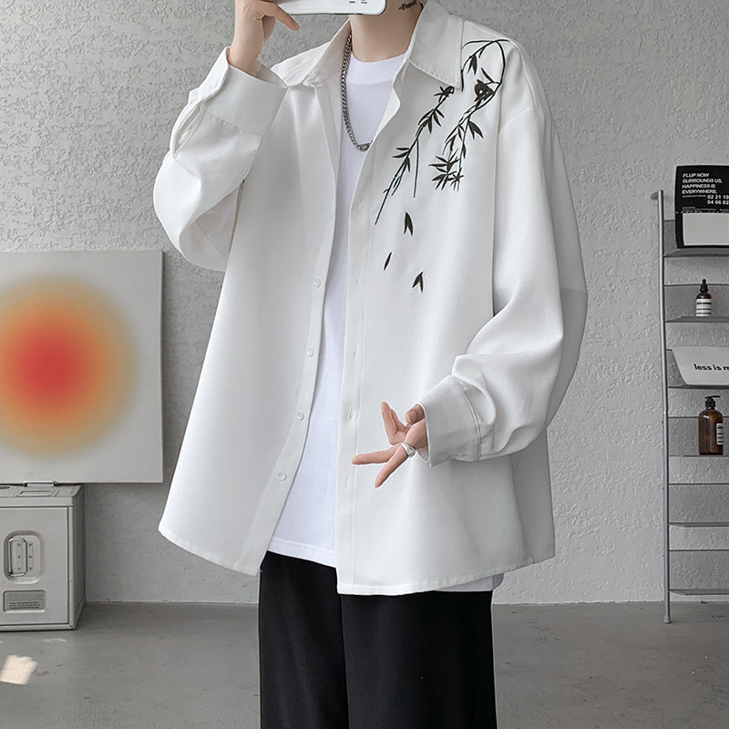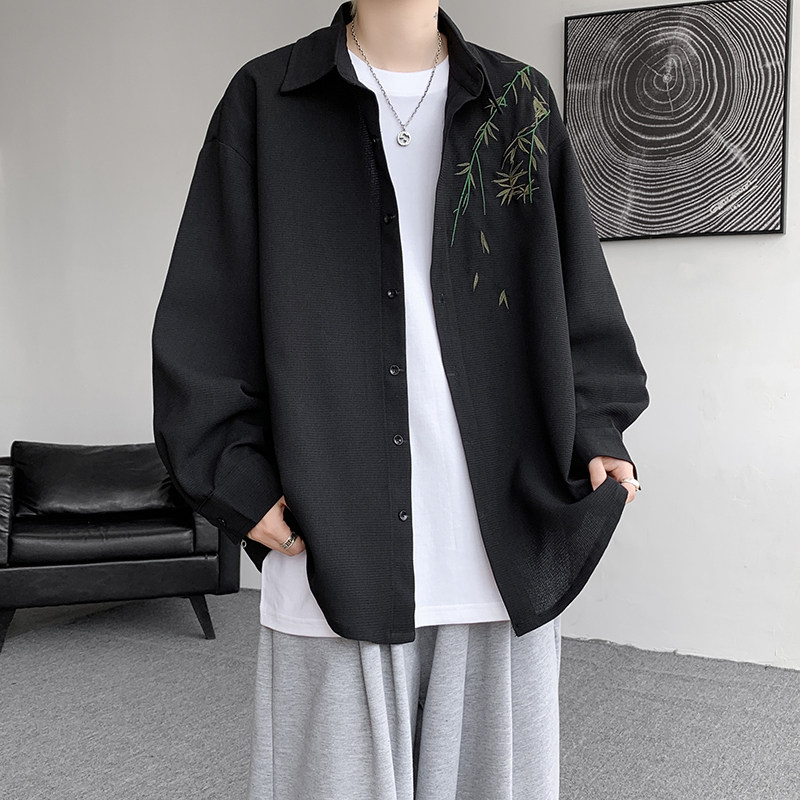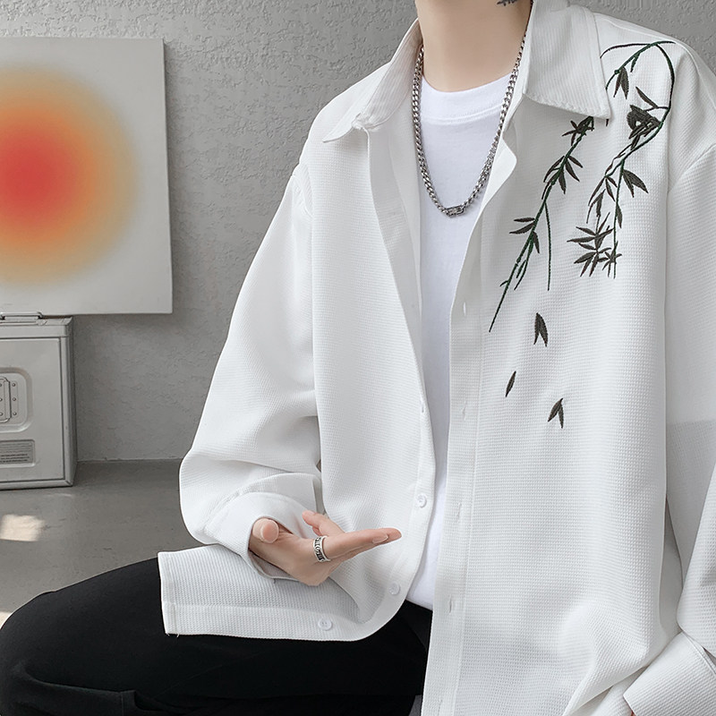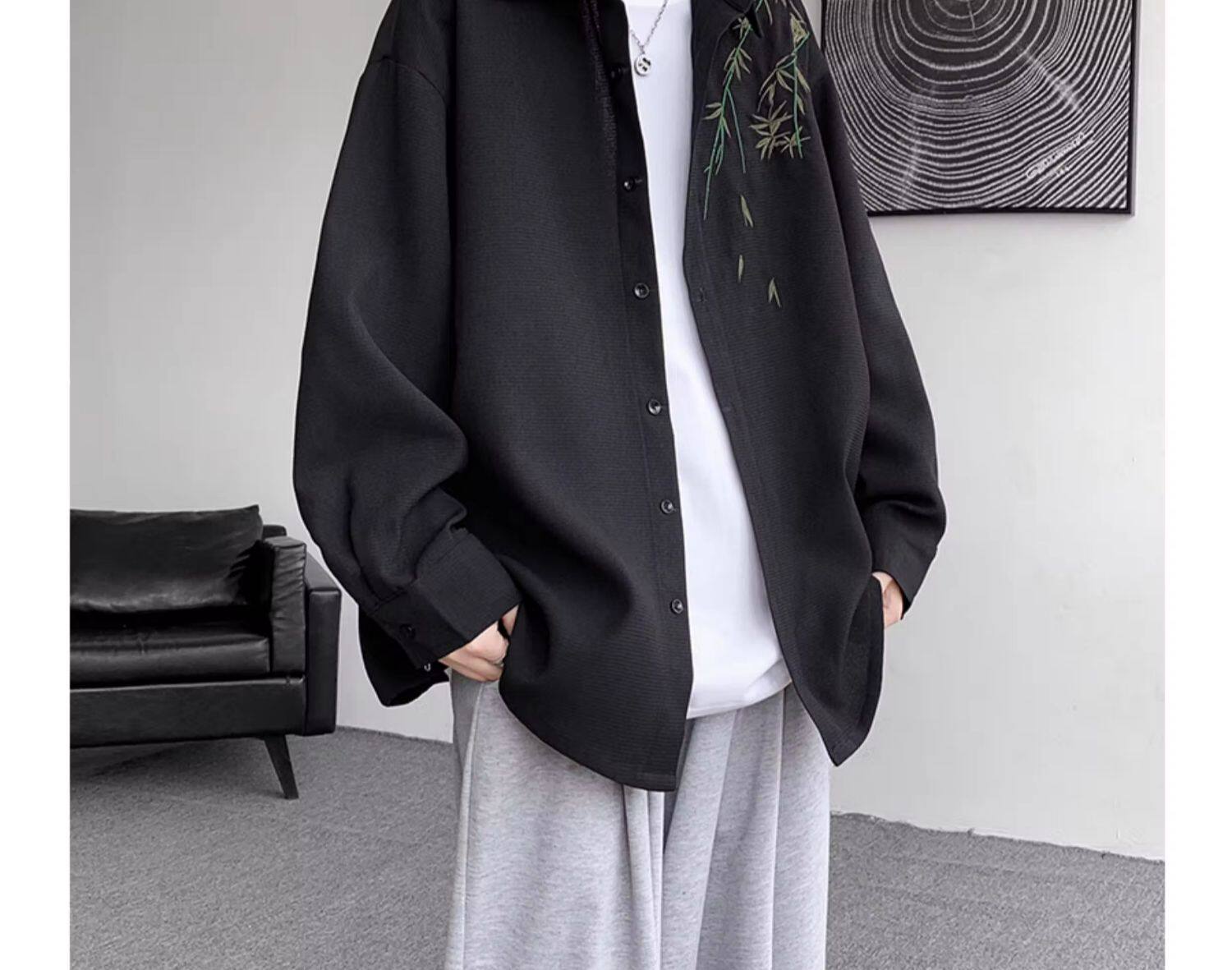 Рубашка, осенняя дизайнерская брендовая куртка, китайский стиль, с вышивкой, тренд сезона, большой размер