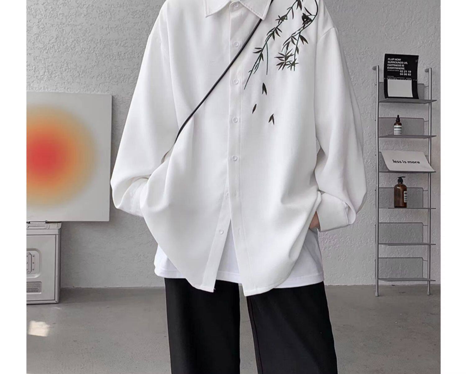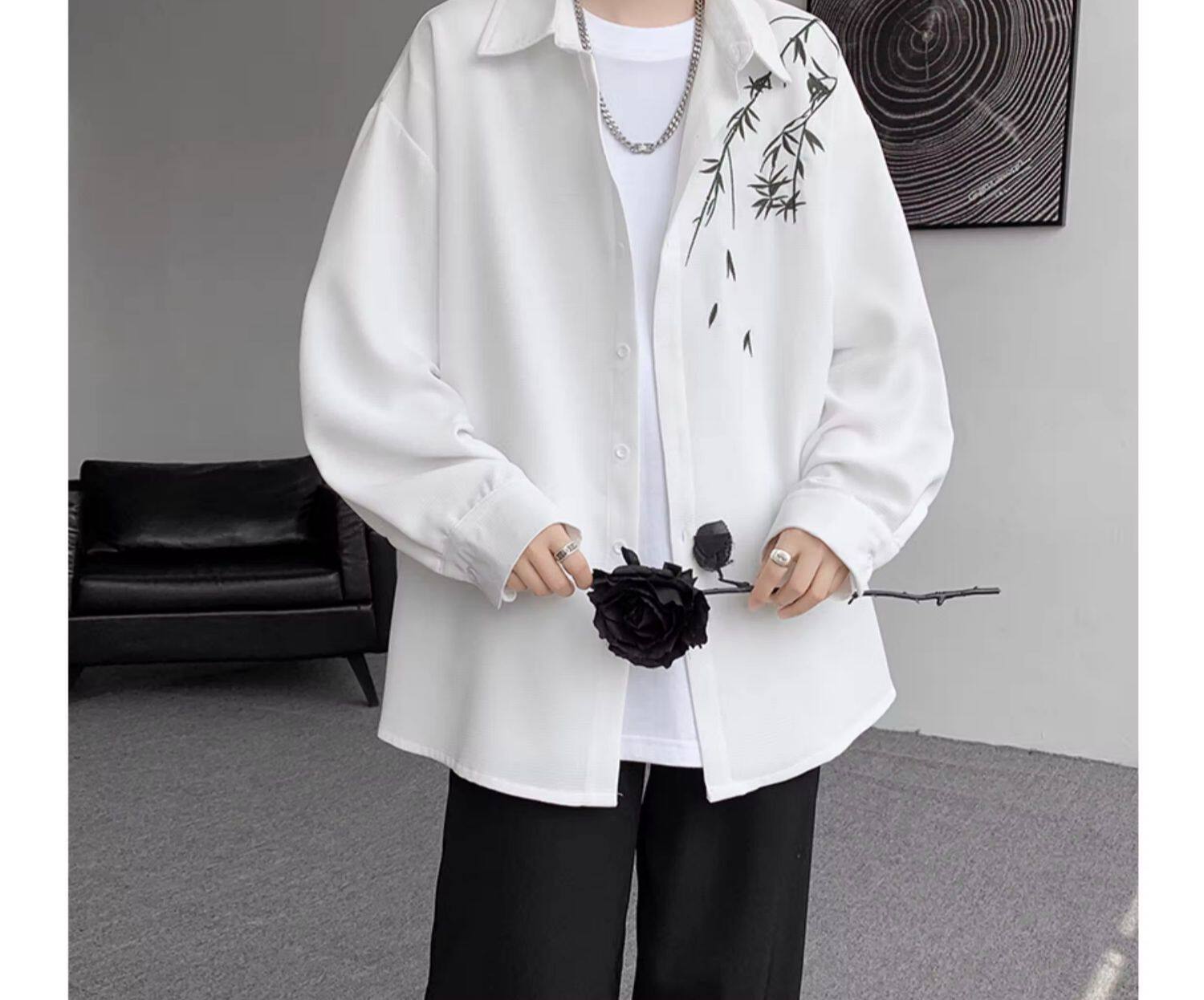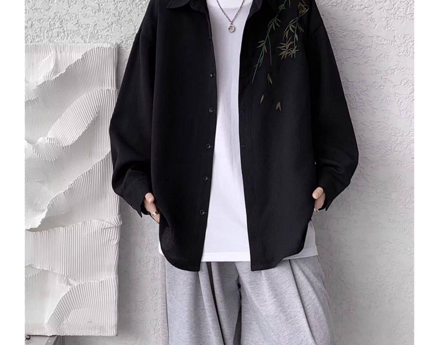 Рубашка, осенняя дизайнерская брендовая куртка, китайский стиль, с вышивкой, тренд сезона, большой размер