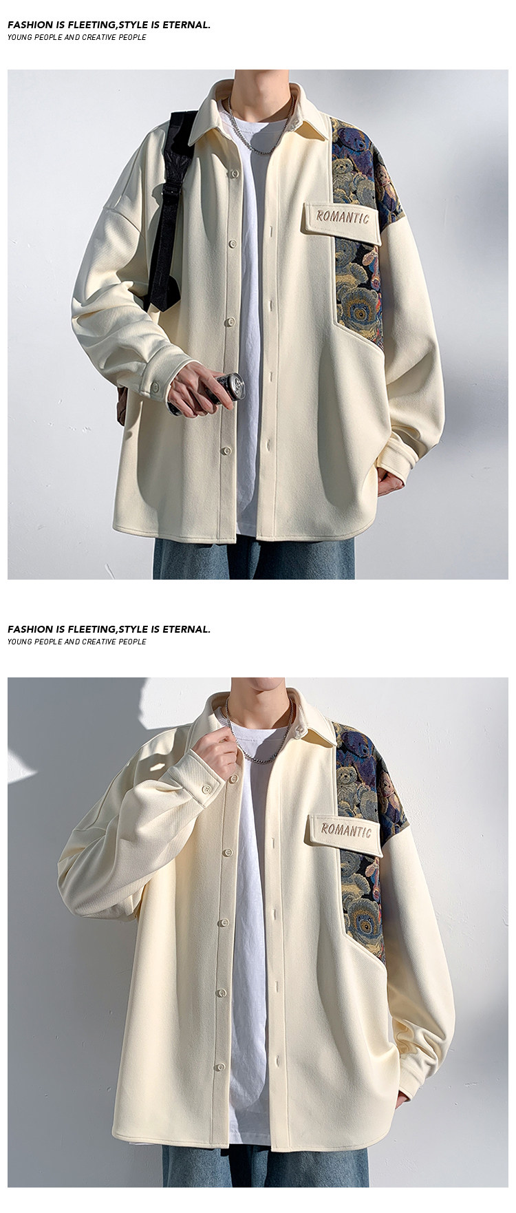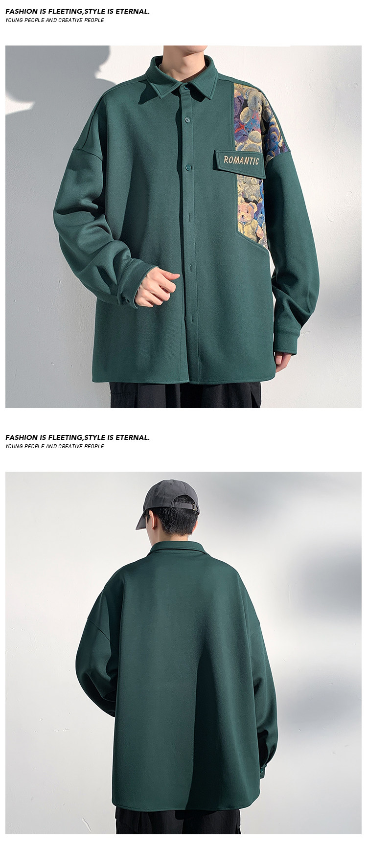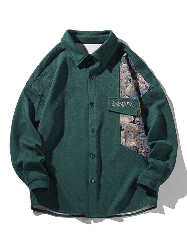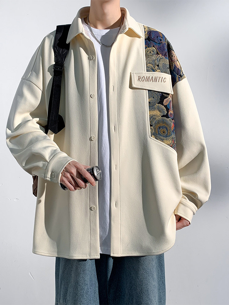 Мужская весенняя куртка, сексуальная рубашка, китайский стиль, с медвежатами, с вышивкой, большой размер
