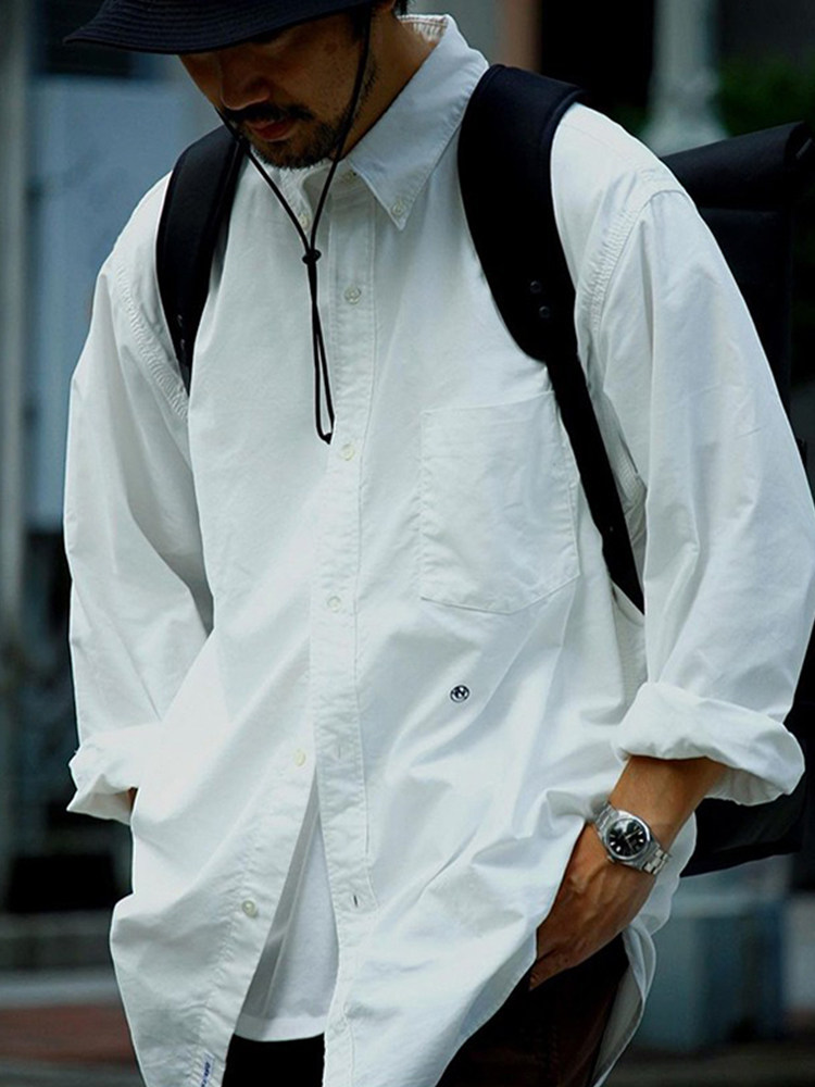 Нанамика пуговица вниз ветряная рубашка простые простые работы длинные рубашки