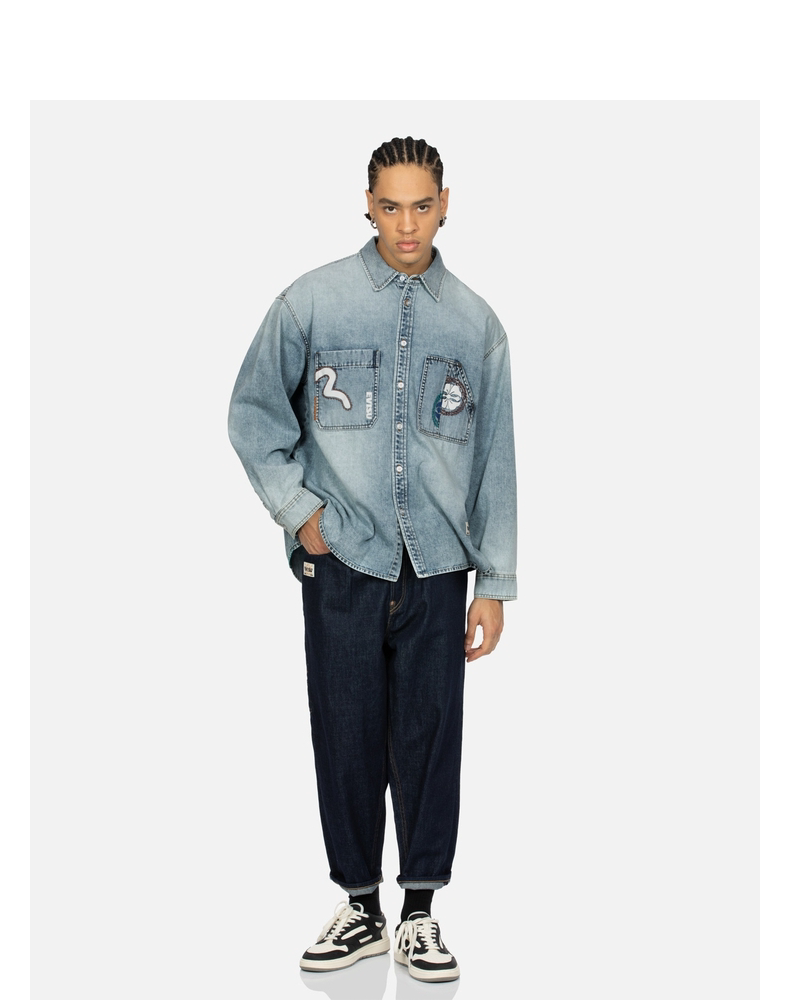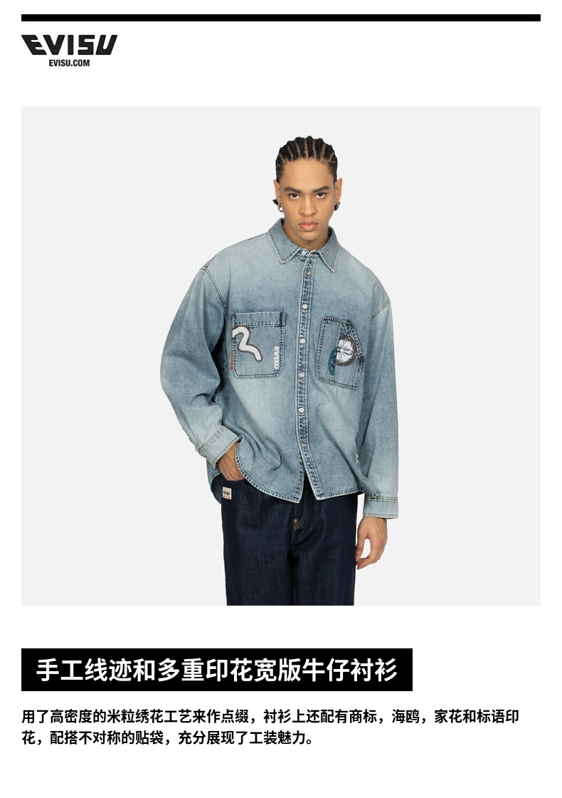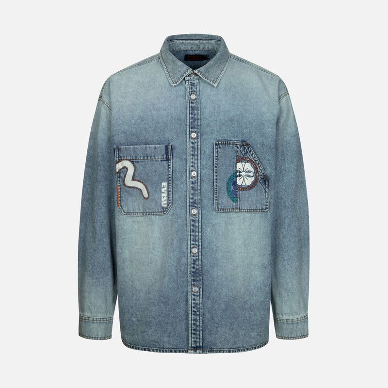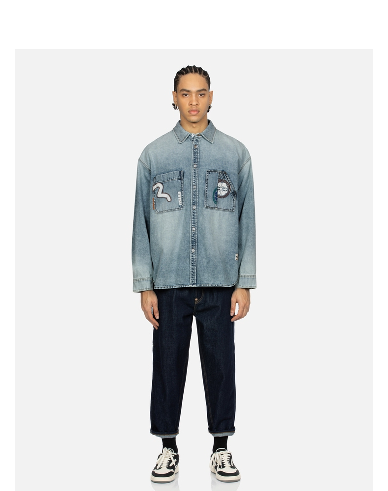 Мужская джинсовая куртка-рубашка EVISU с множественным принтом 2ESHTM4DL8012LFDN