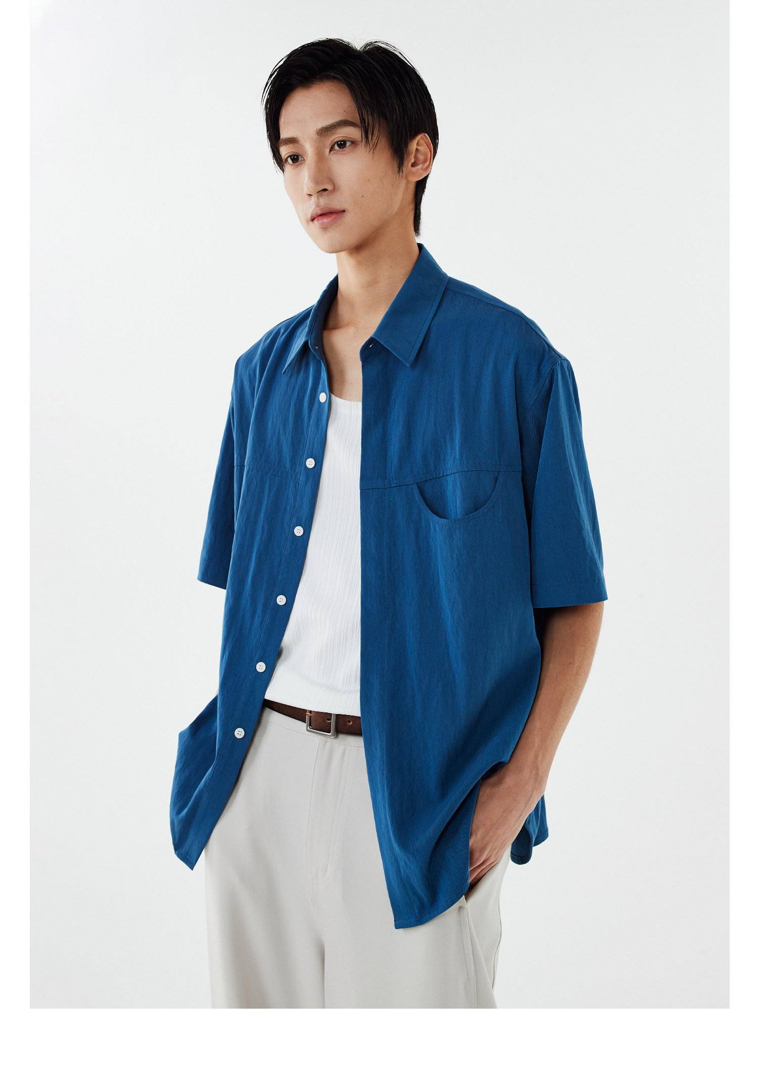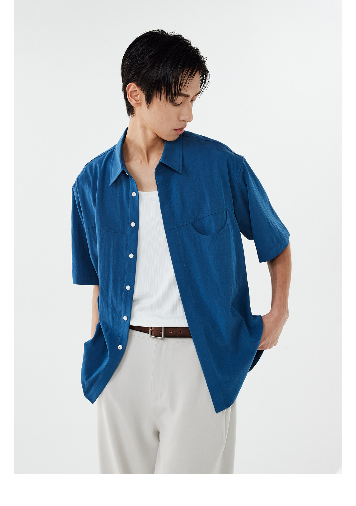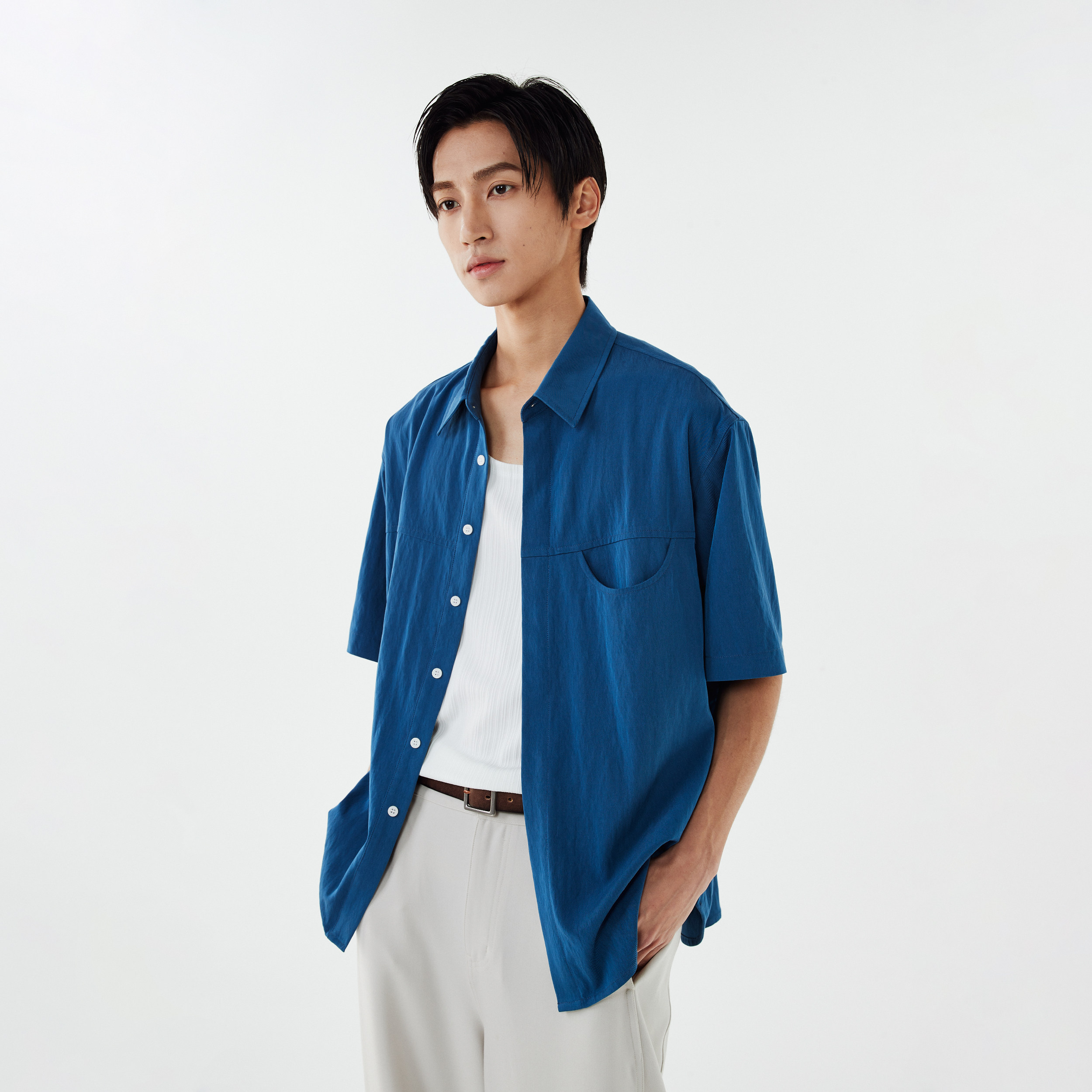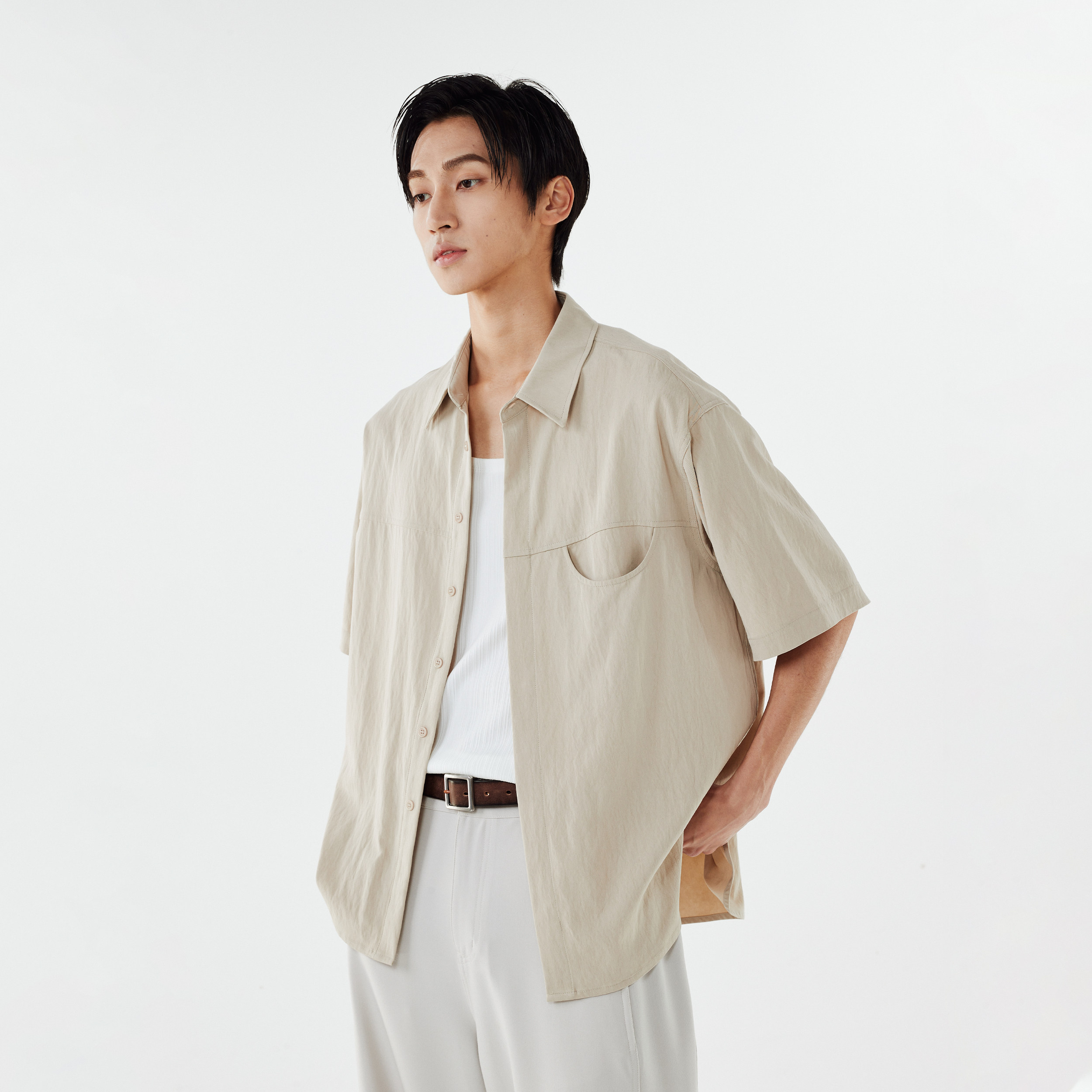 DIMC Рубашка с короткими рукавами и карманами с лацканами, летняя свободная и непринужденная повседневная верхняя рубашка для мальчиков.