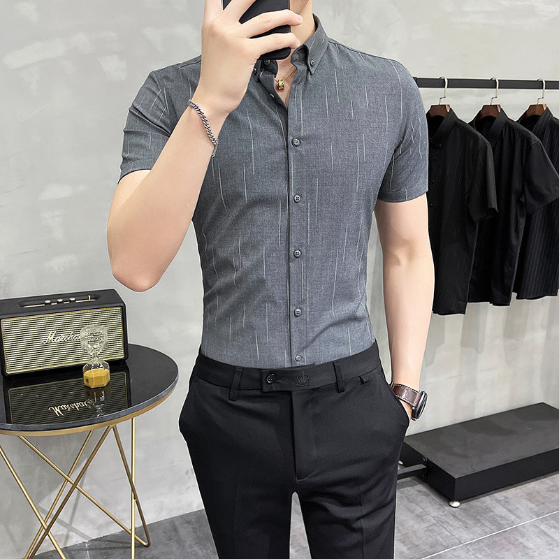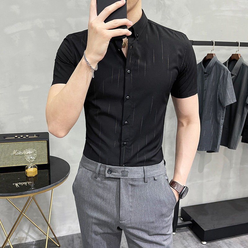Летняя рубашка, элитный пиджак классического кроя, короткий рукав, 2024 года, облегающий крой