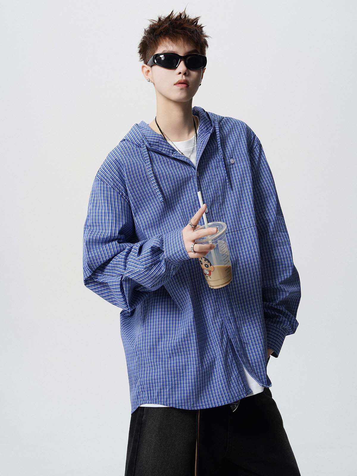 Ретро синяя рубашка с капюшоном, дизайнерская куртка для влюбленных, в американском стиле